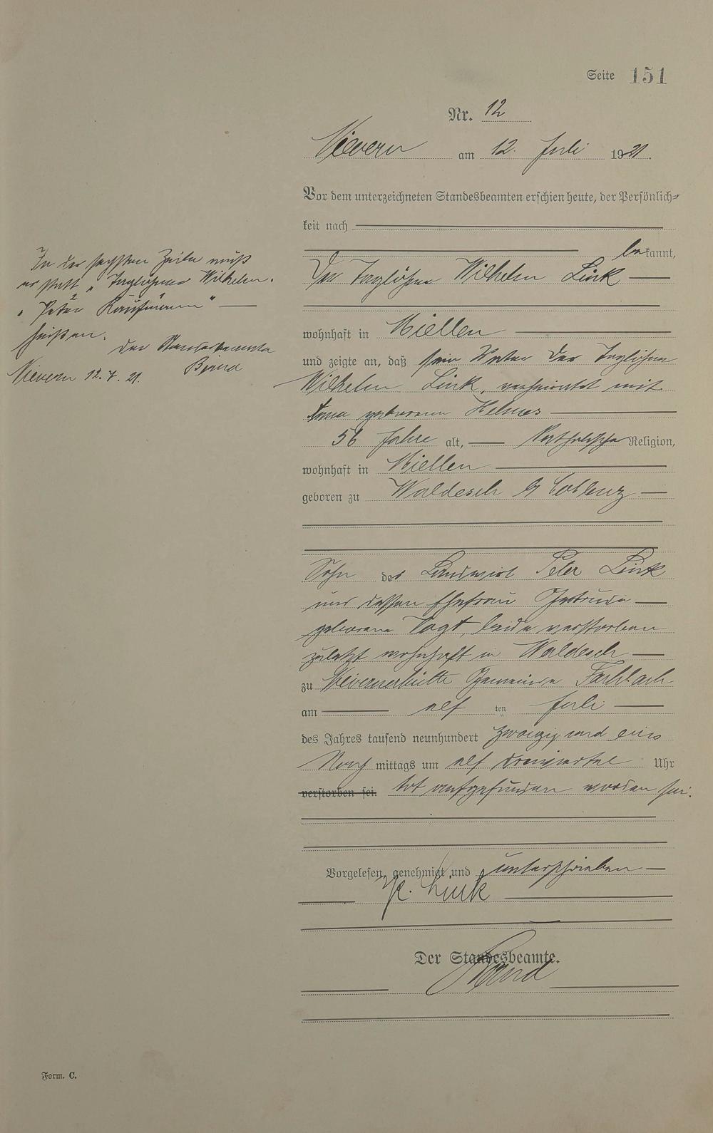 Sterberegister 1921