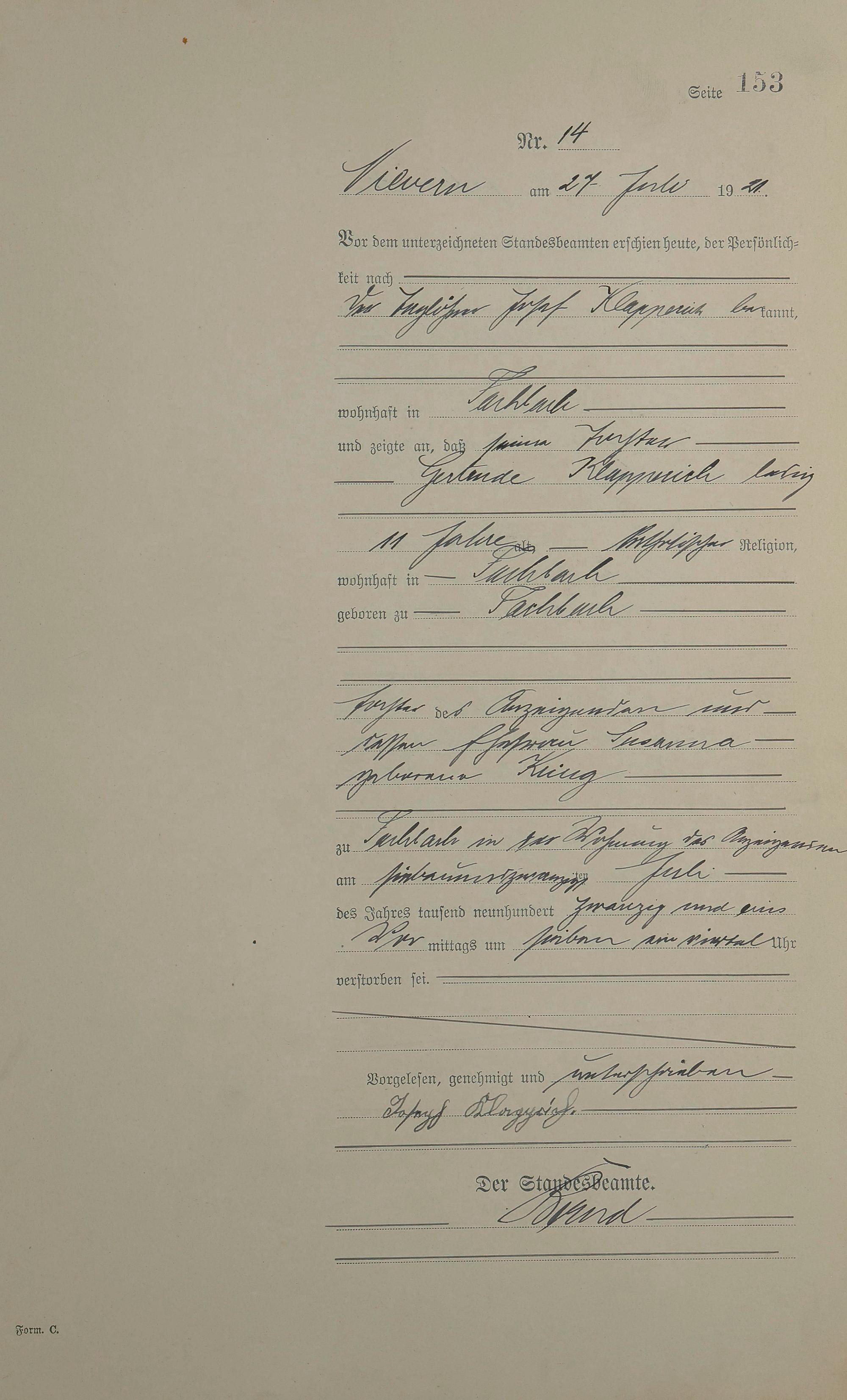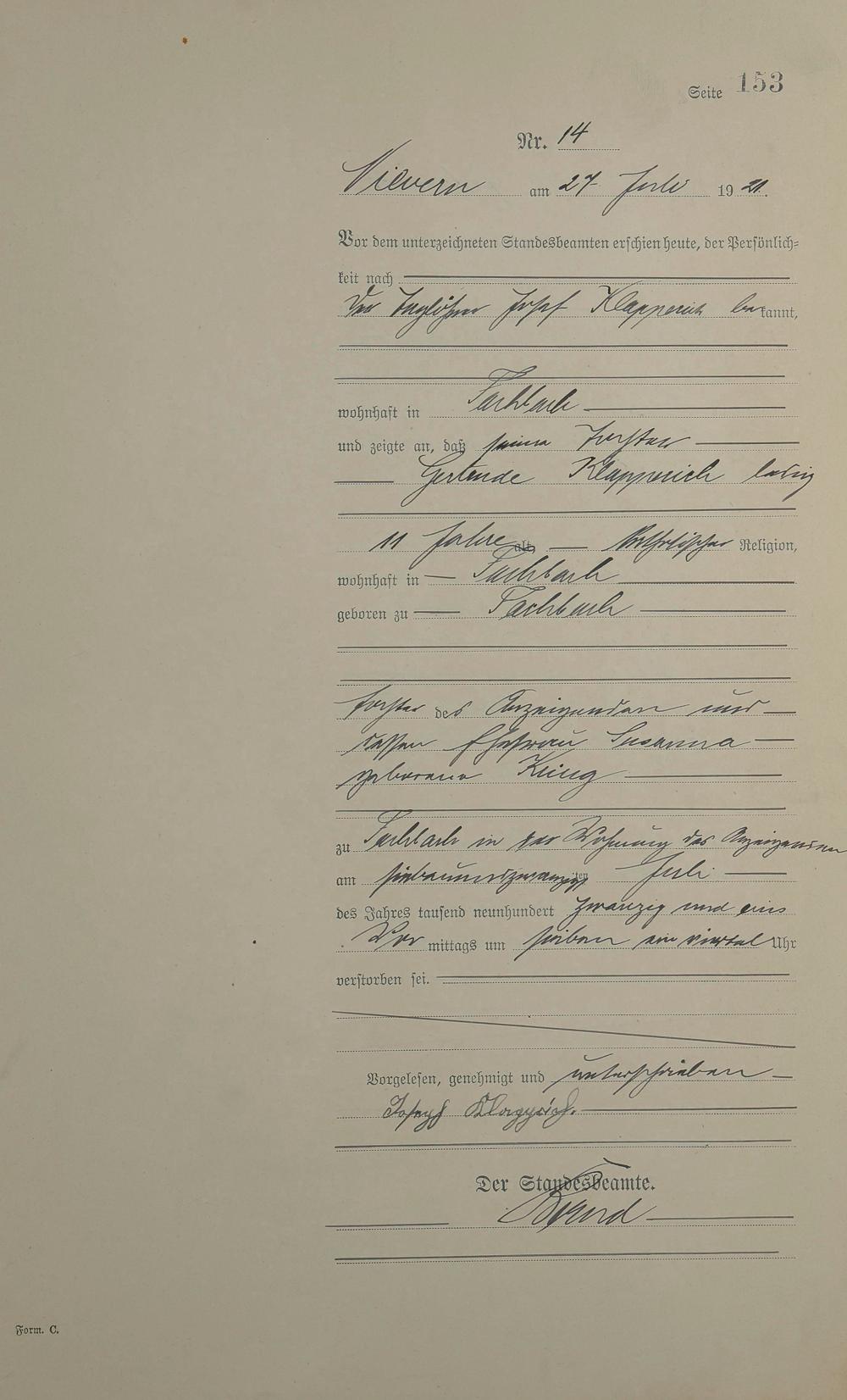 Sterberegister 1921