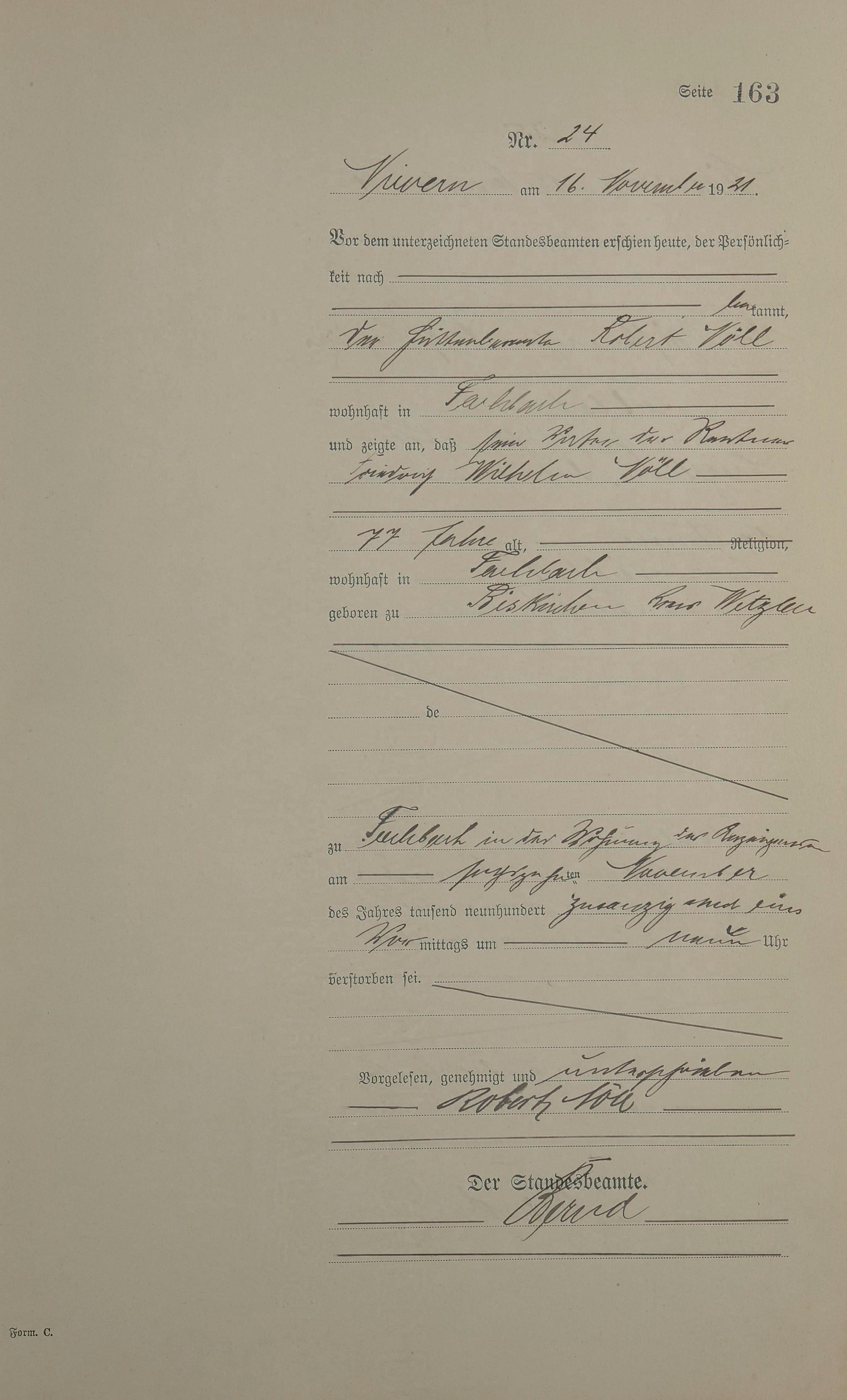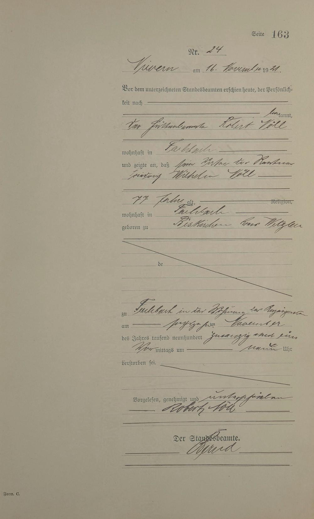 Sterberegister 1921