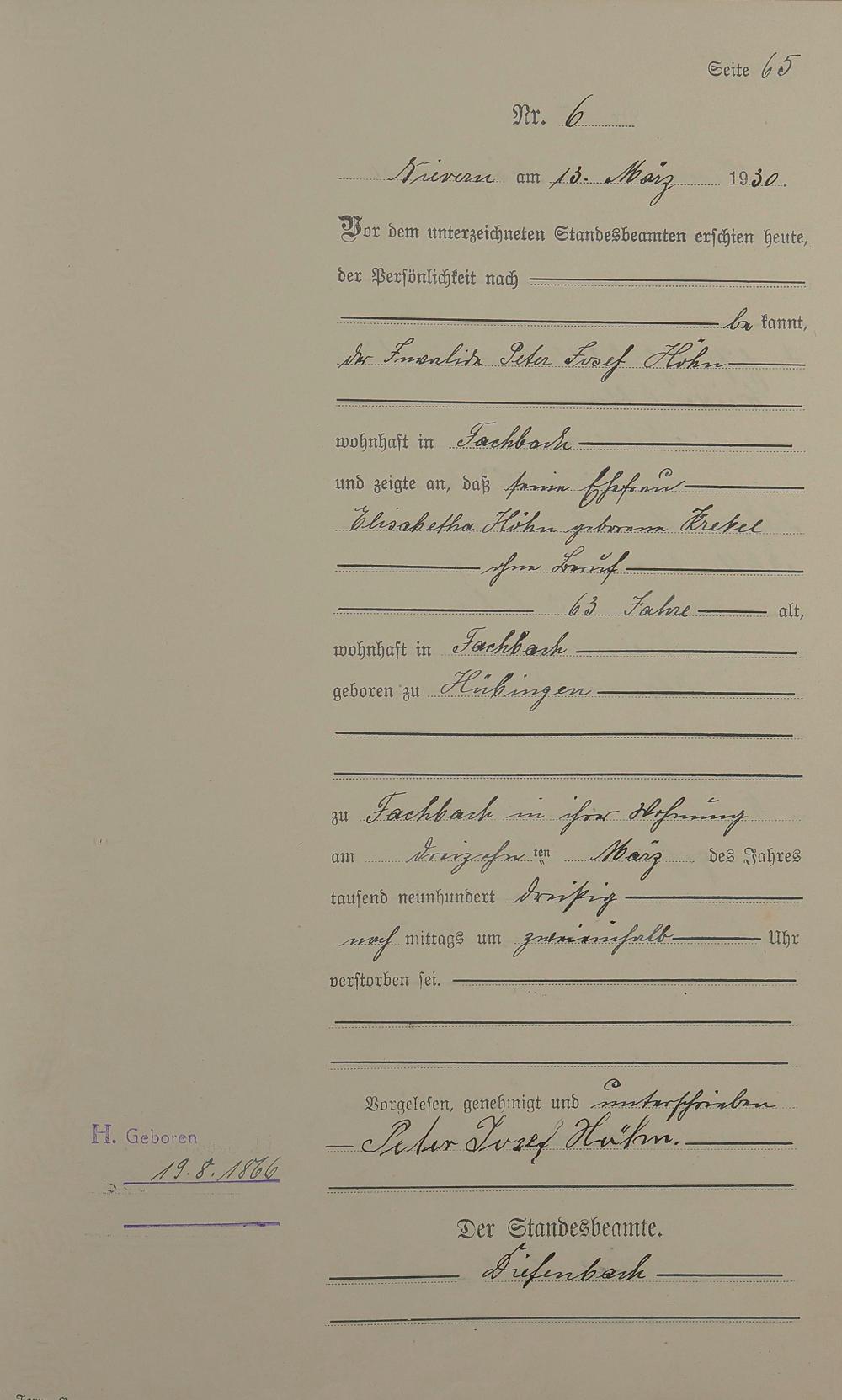 291/04: Sterberegister 1930