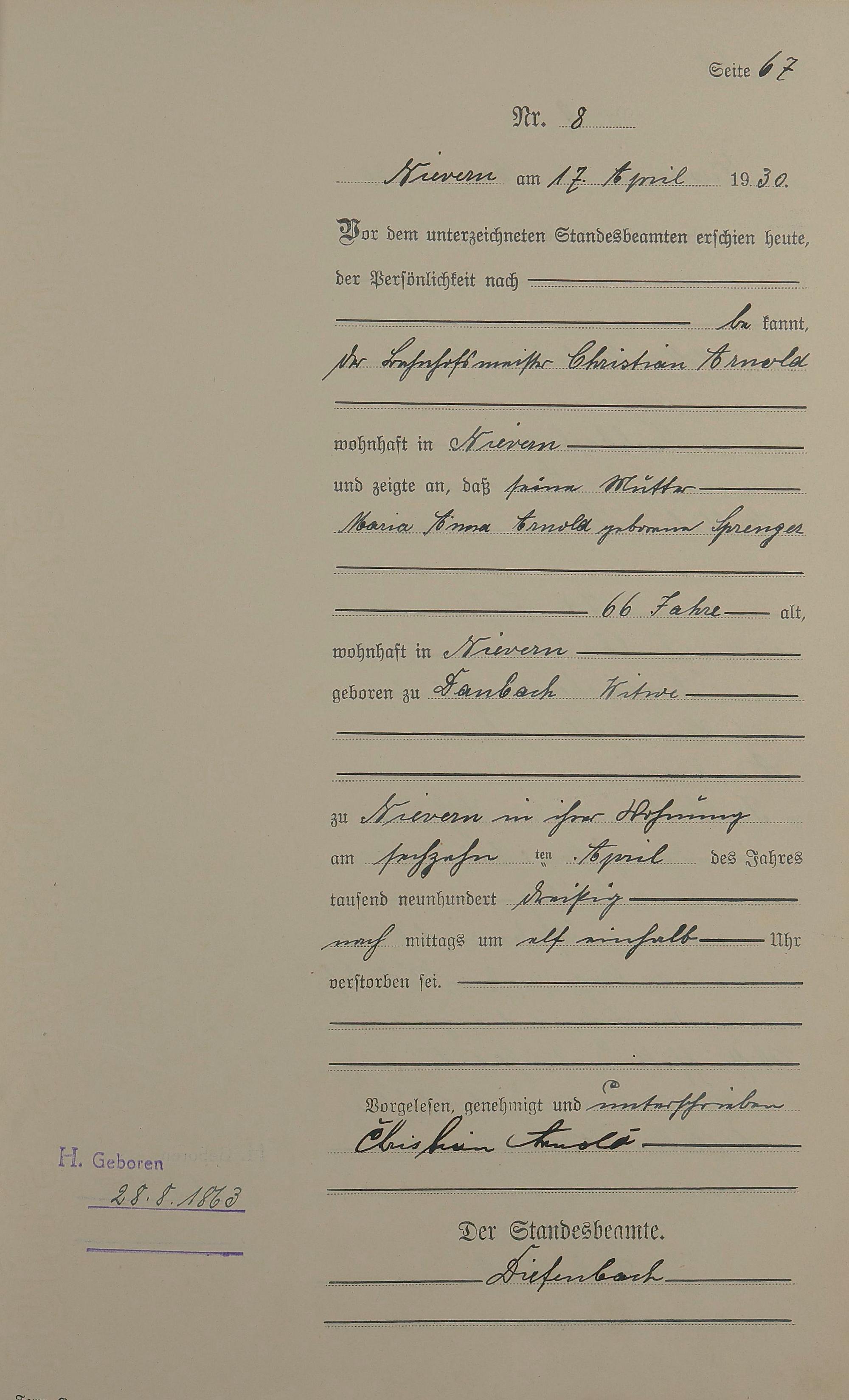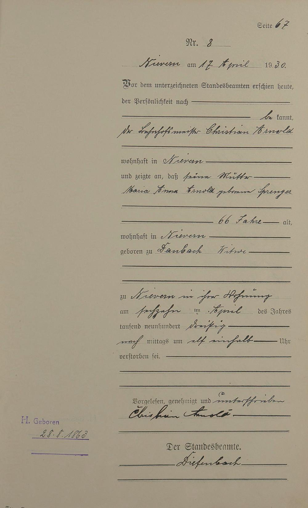 Sterberegister 1930