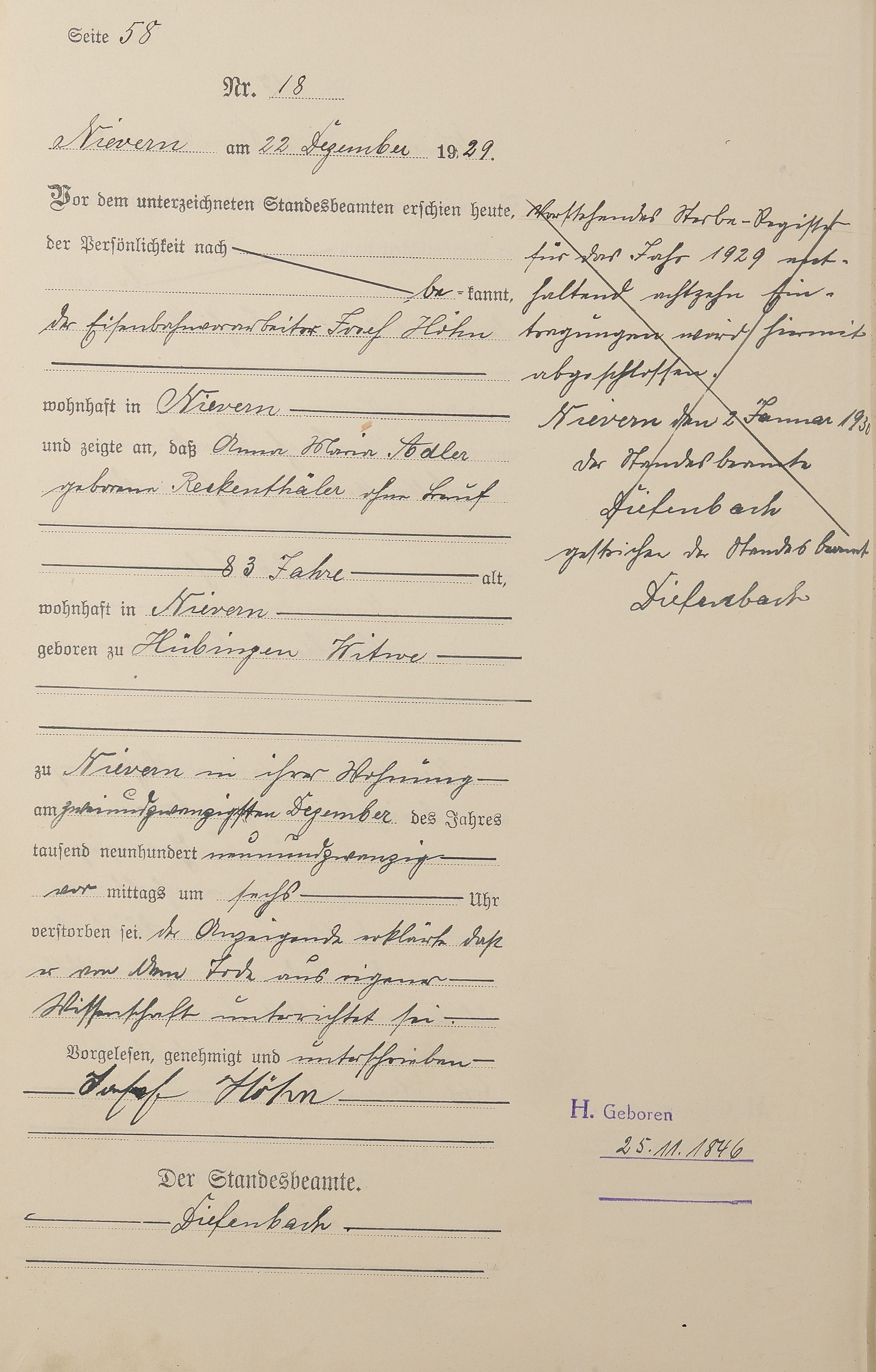 Sterberegister 1929