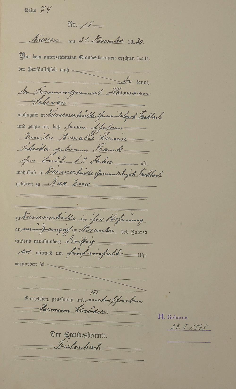 291/04: Sterberegister 1930