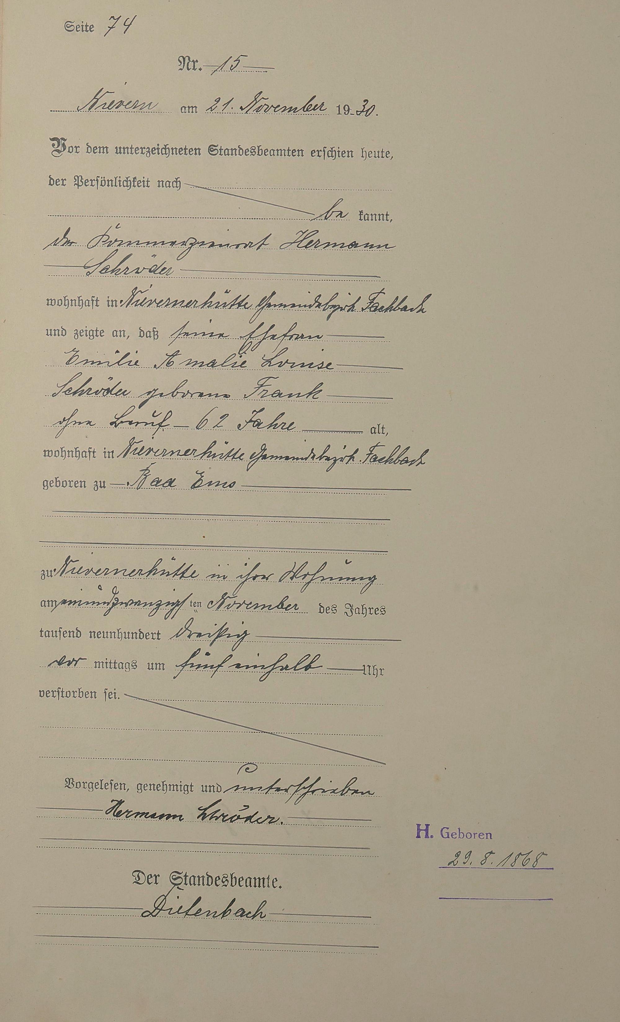 Sterberegister 1930