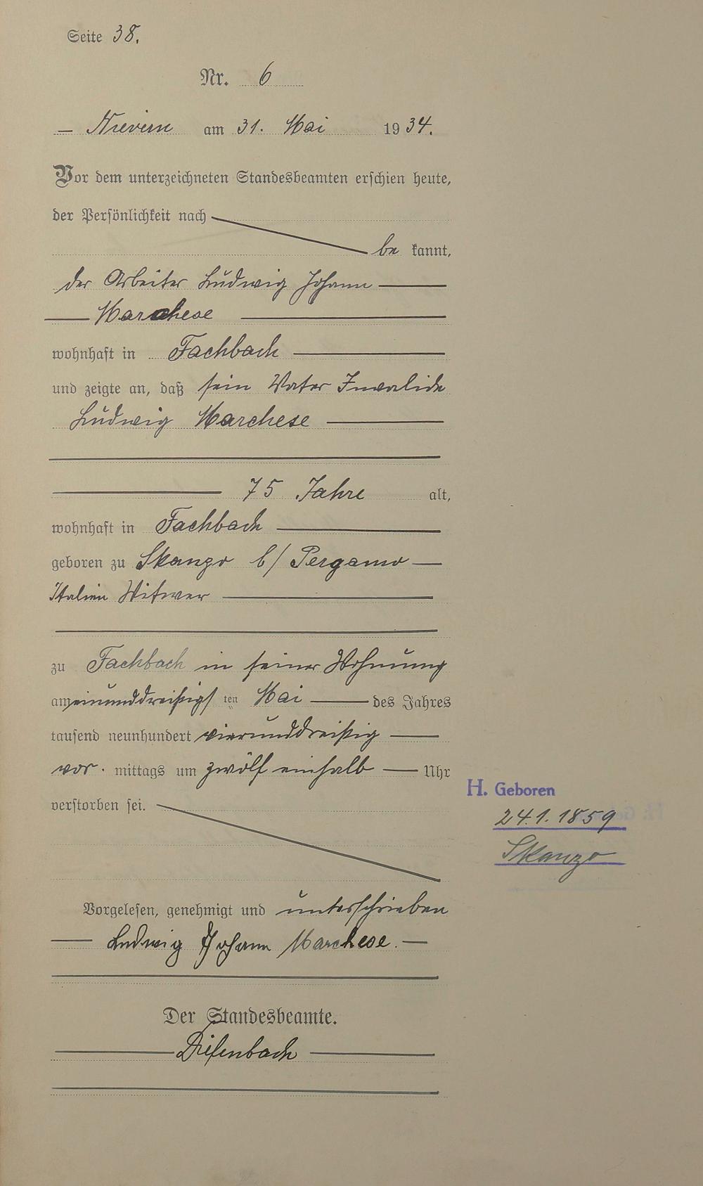 Sterberegister 1934