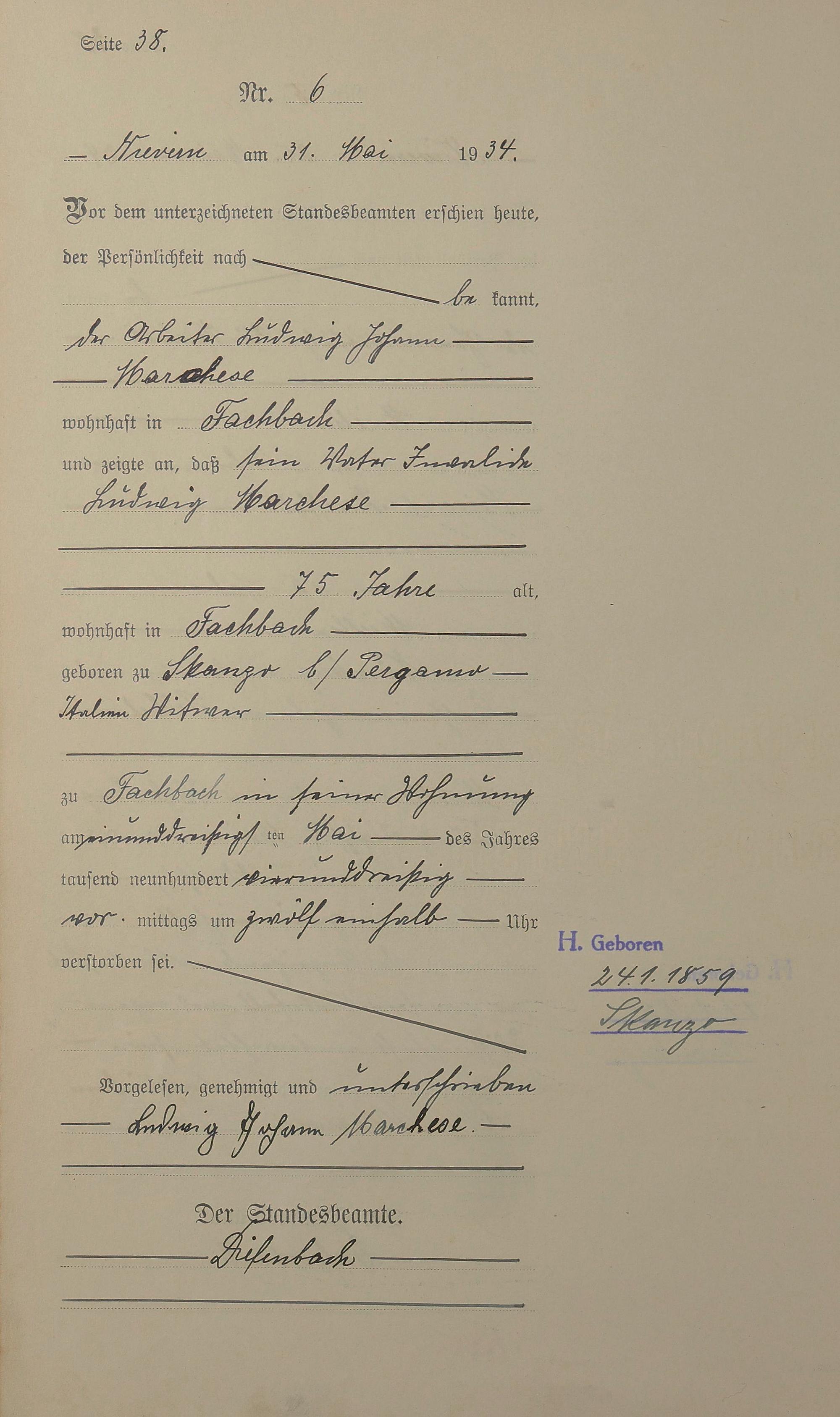 291/08: Sterberegister 1934