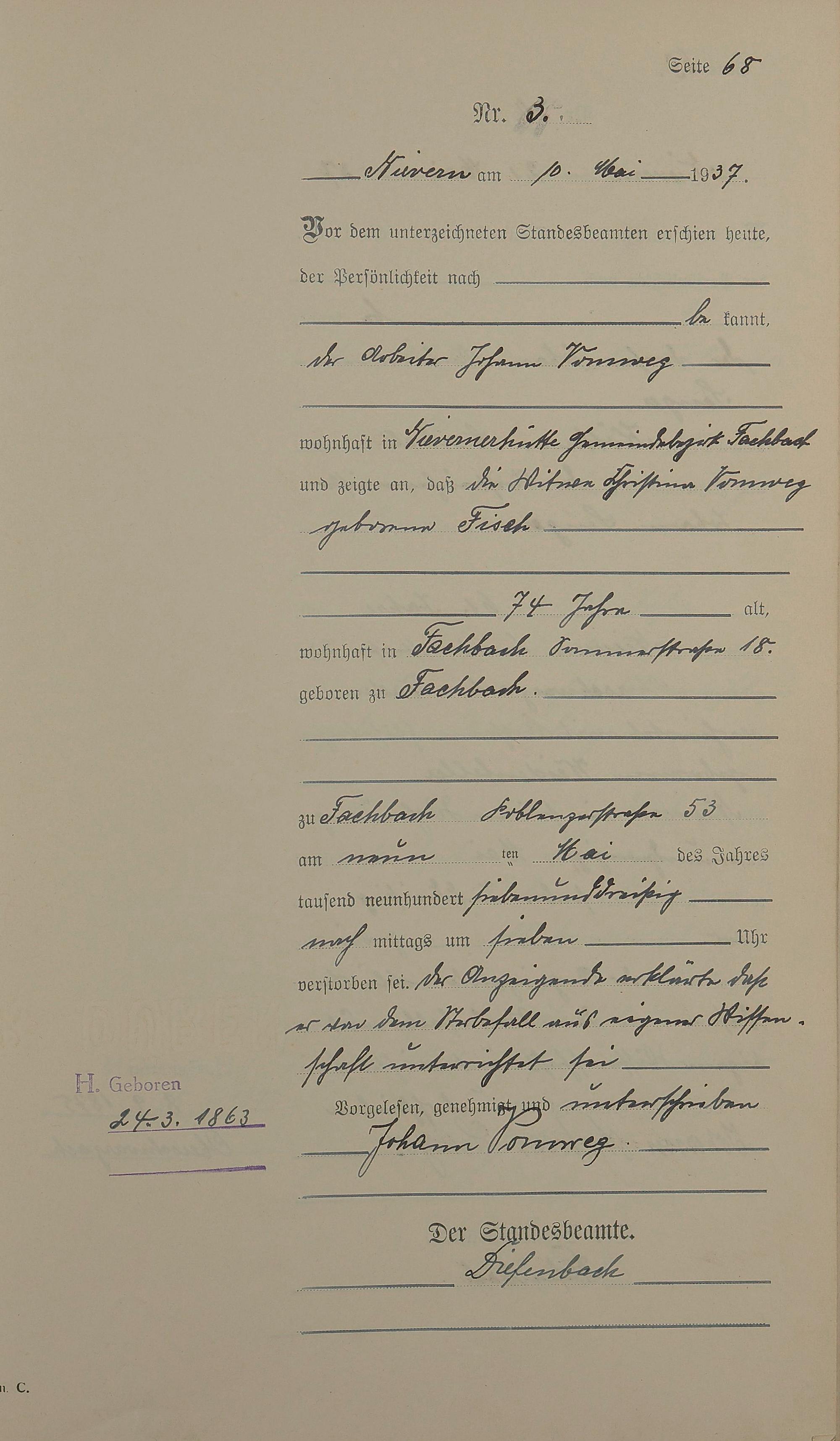 291/11: Sterberegister 1937