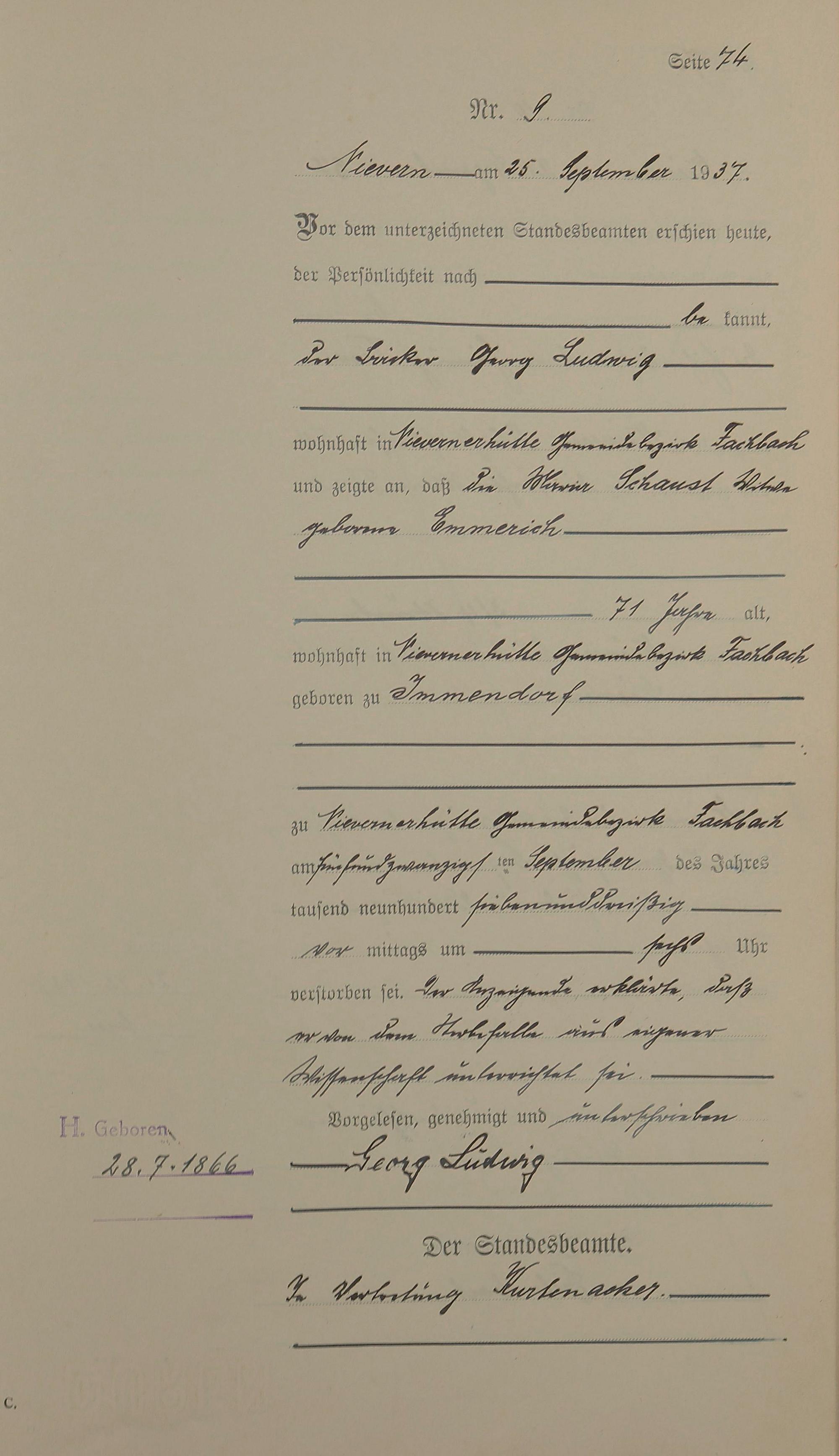 291/11: Sterberegister 1937