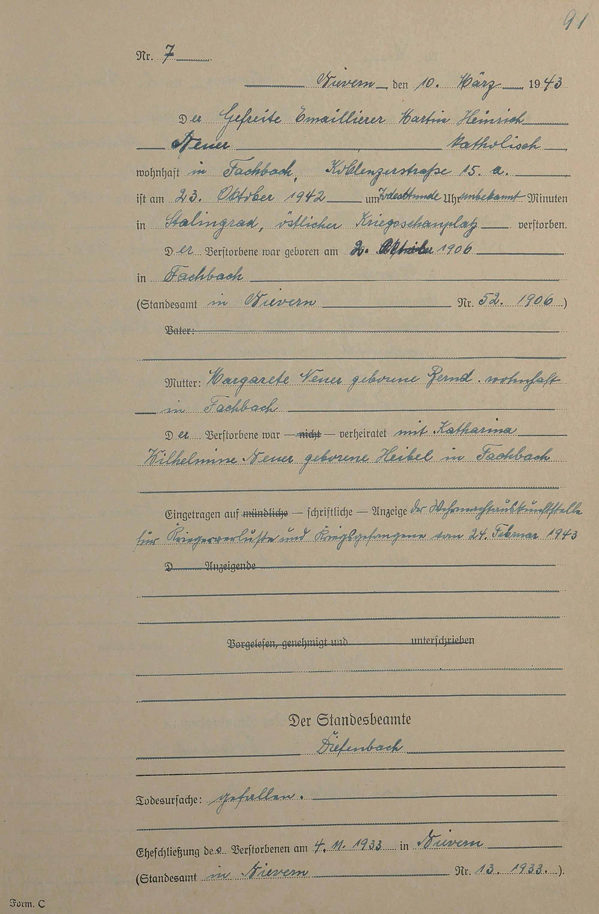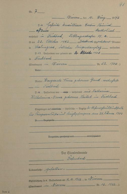 291/17: Sterberegister 1943