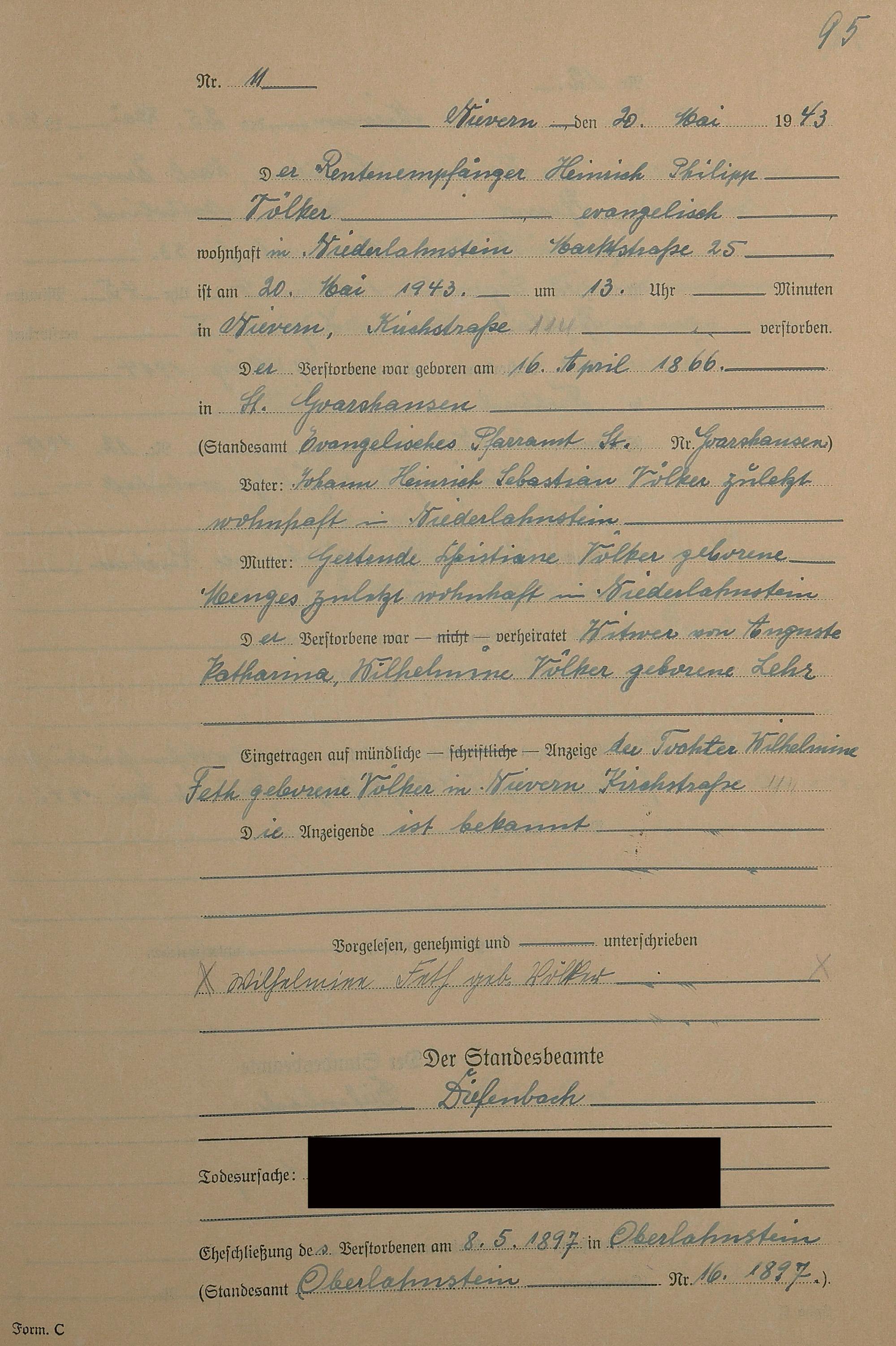 291/17: Sterberegister 1943