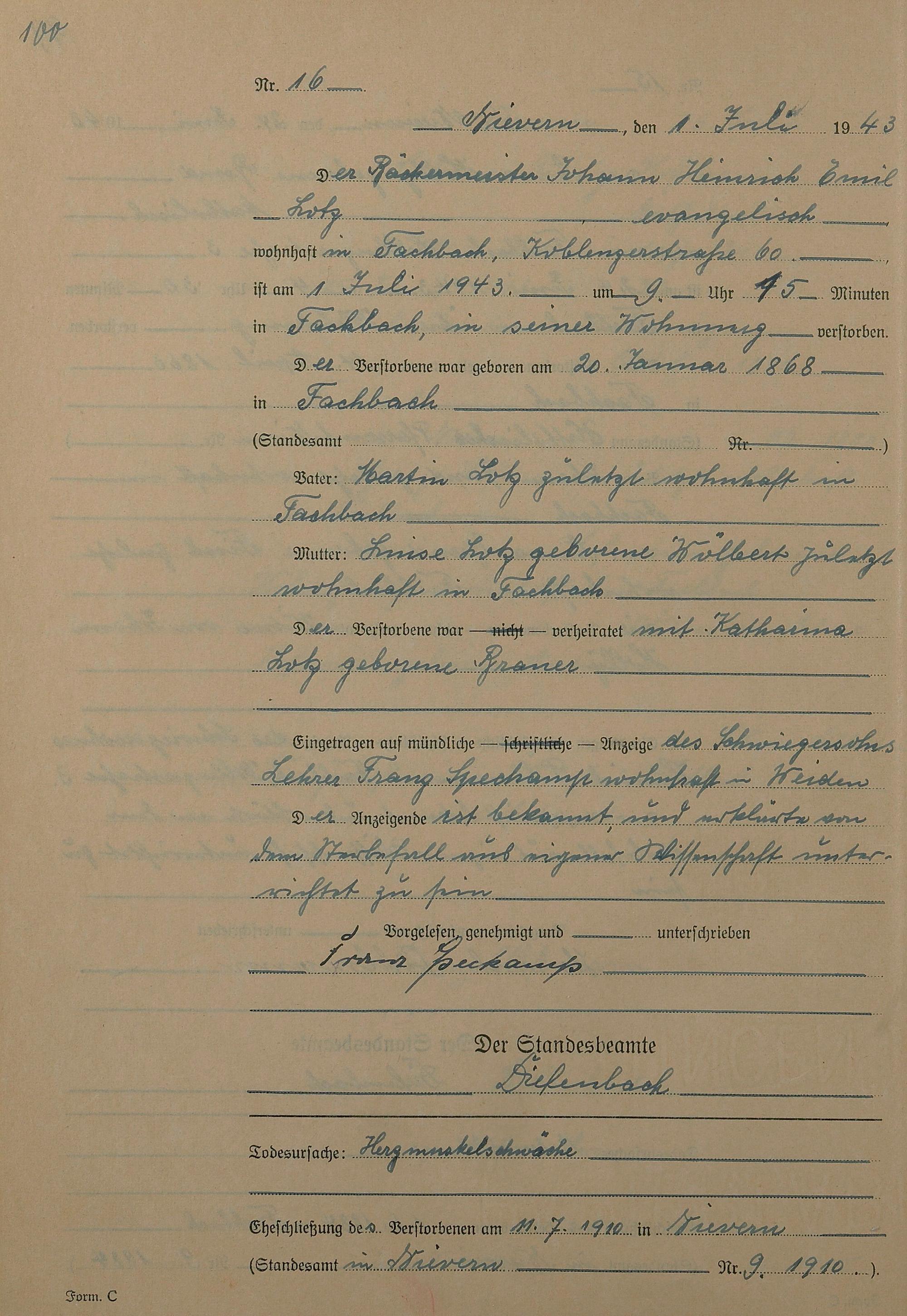 291/17: Sterberegister 1943