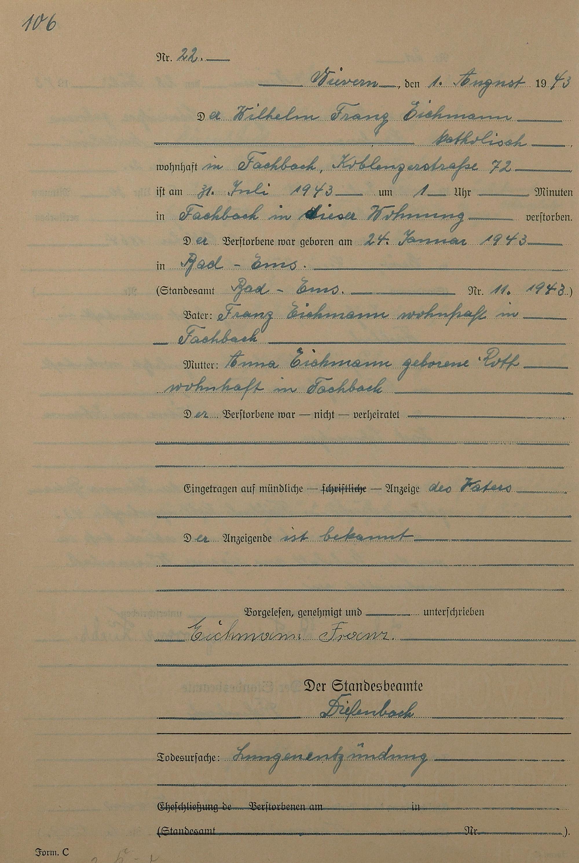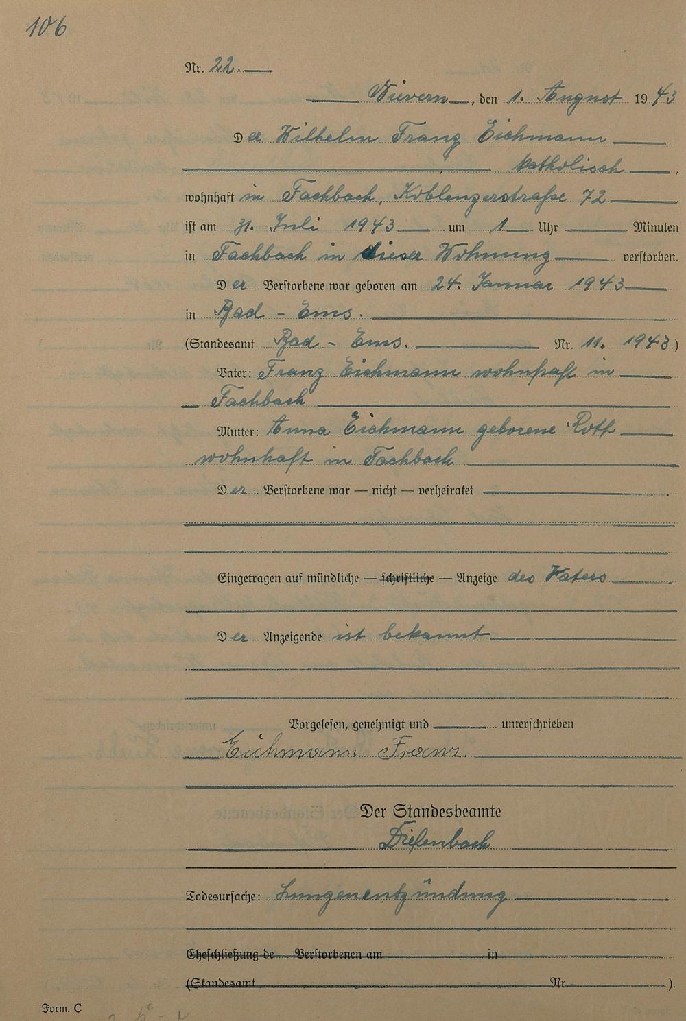 291/17: Sterberegister 1943