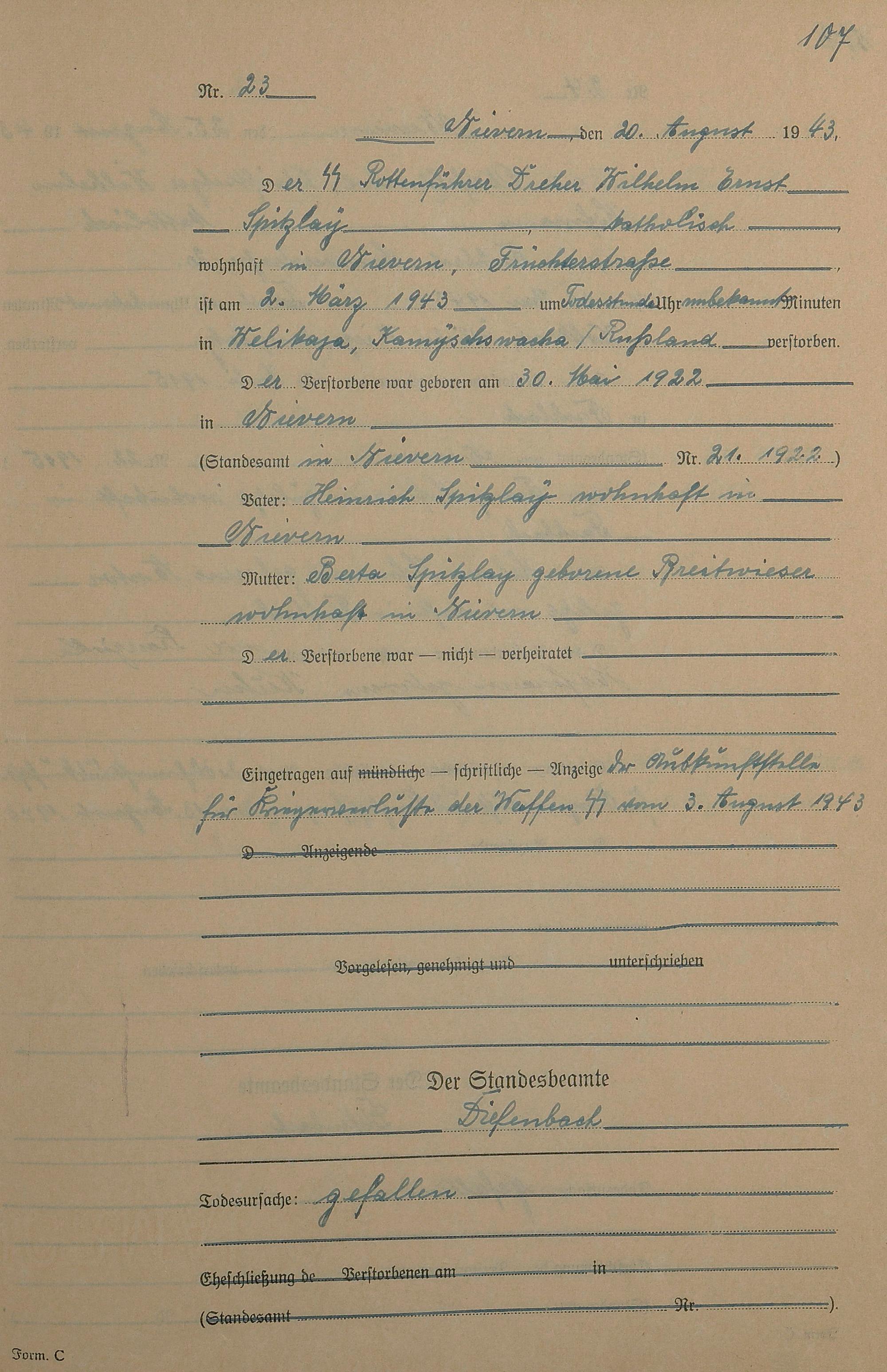 291/17: Sterberegister 1943