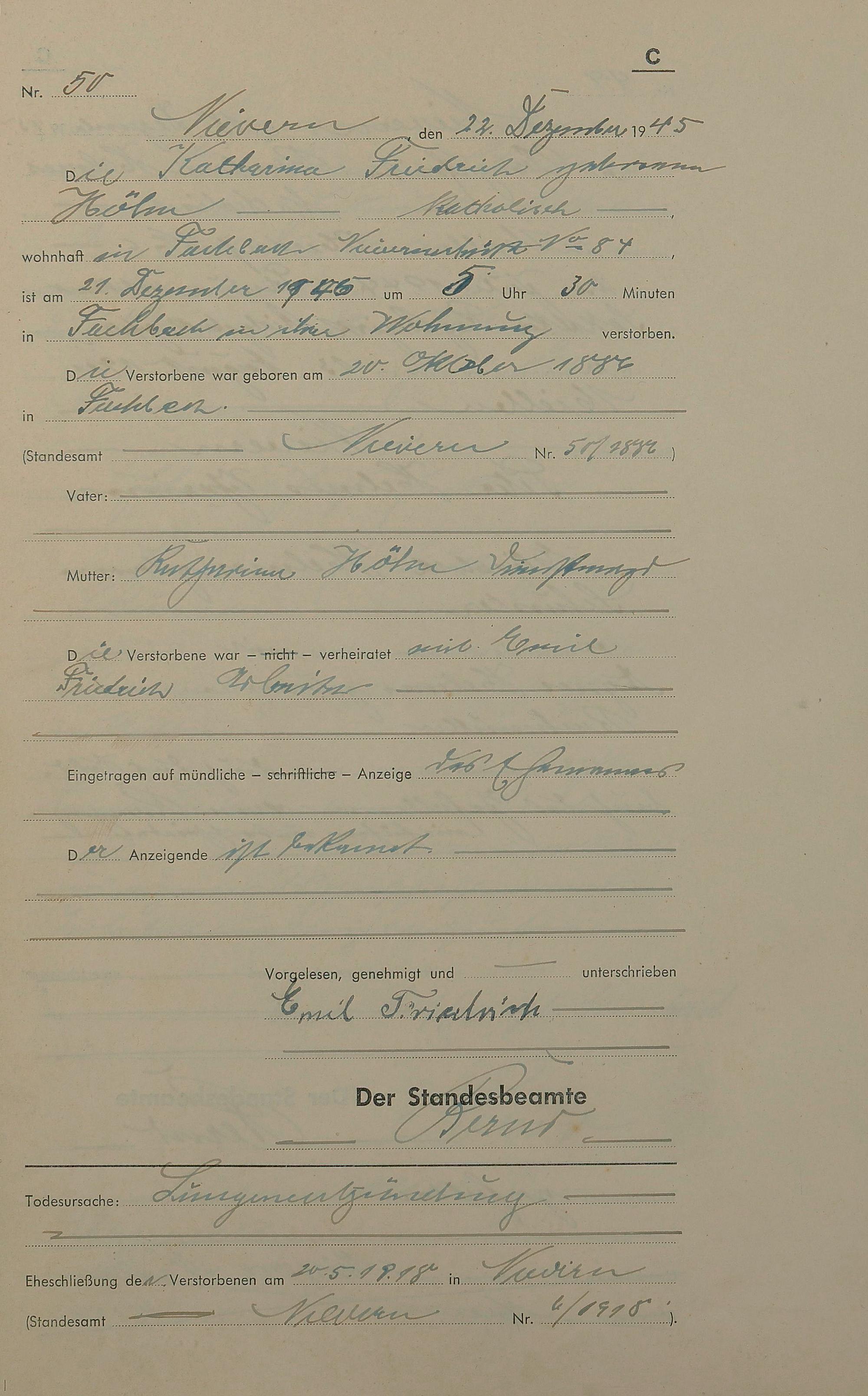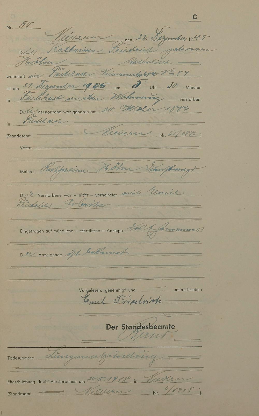 291/19: Sterberegister 1945
