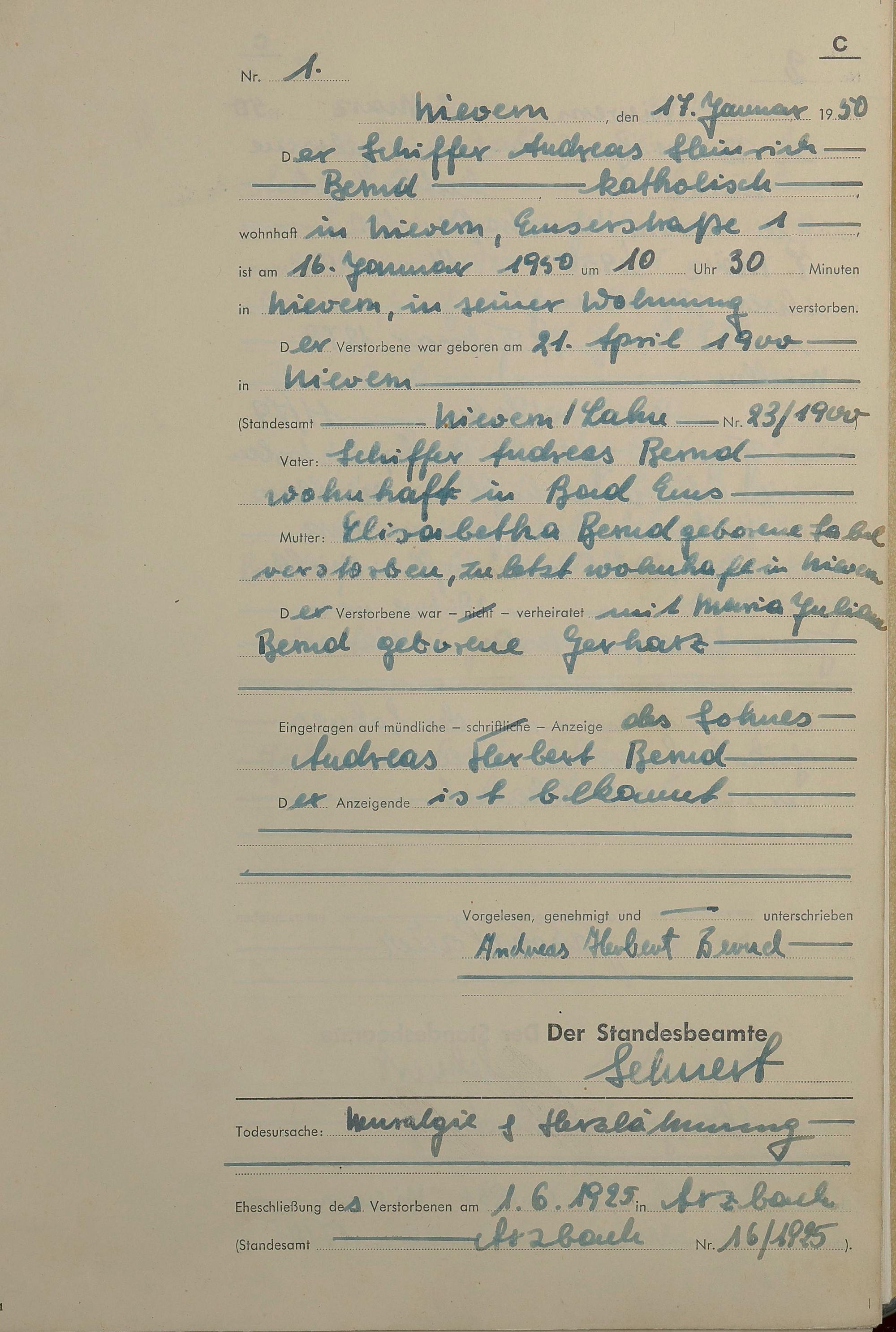 Sterberegister 1950