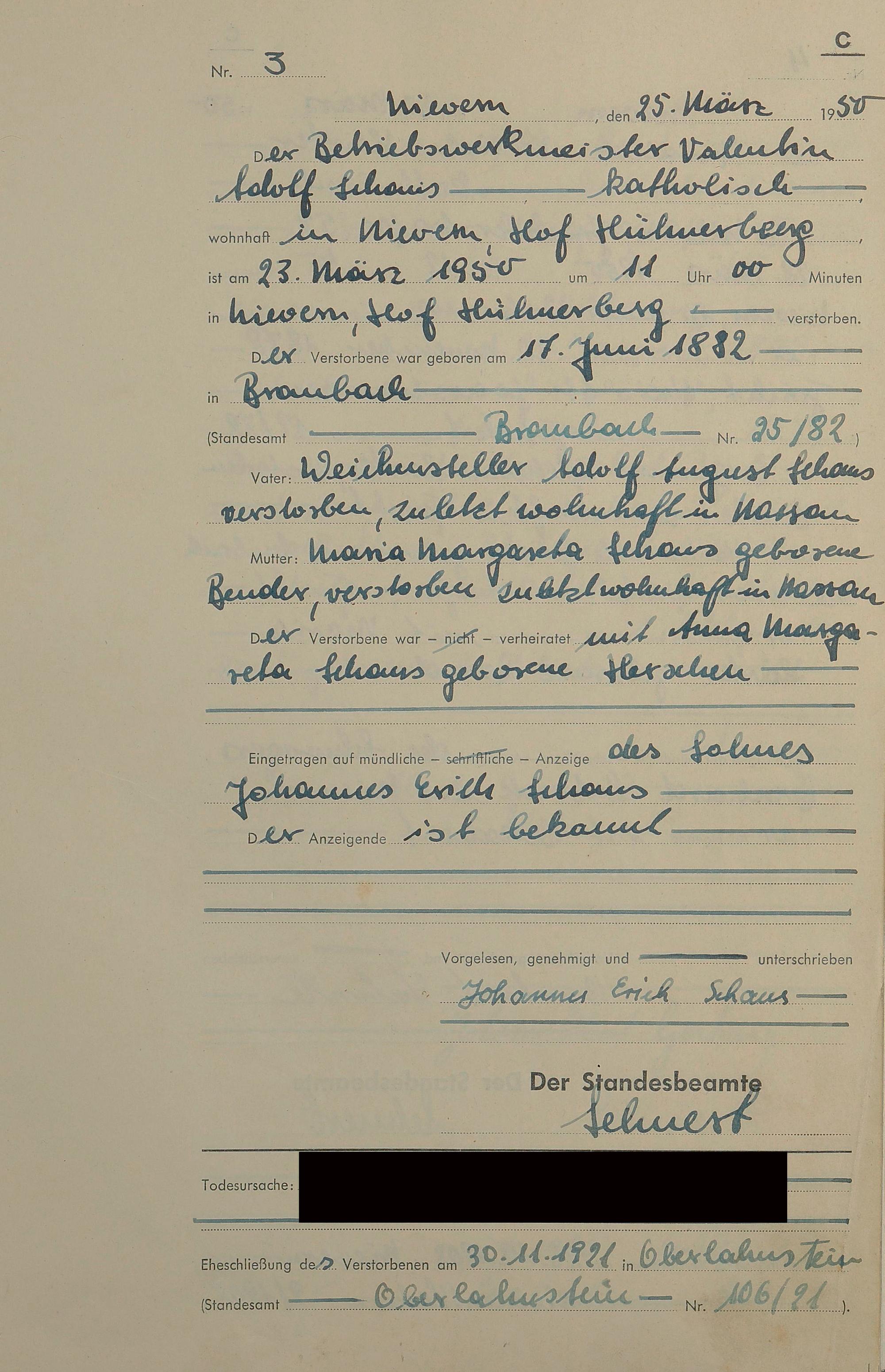 Sterberegister 1950