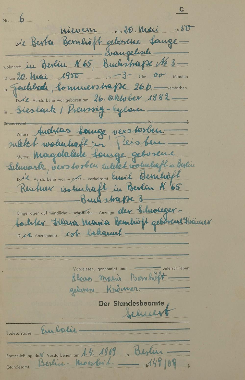 Sterberegister 1950