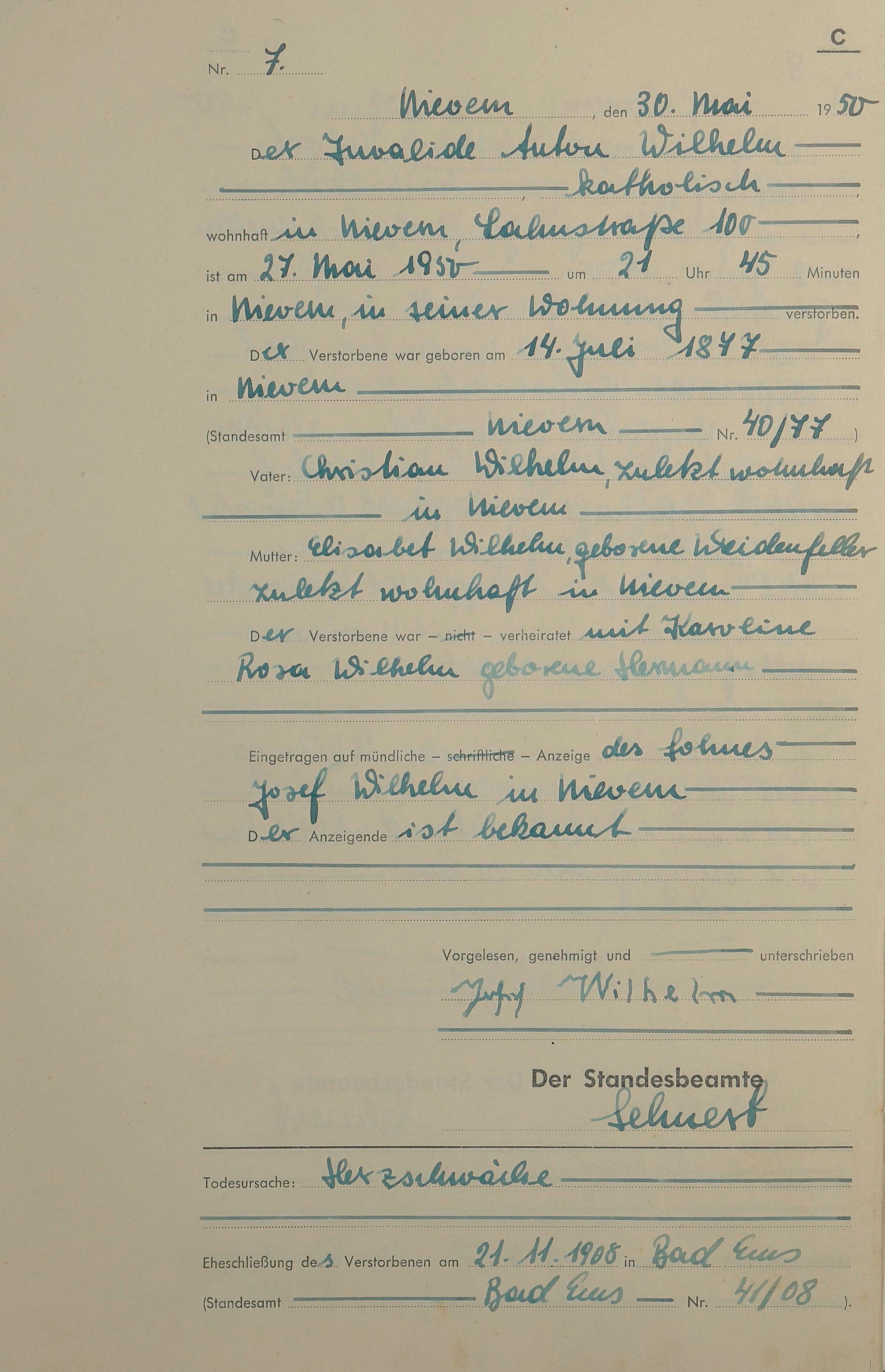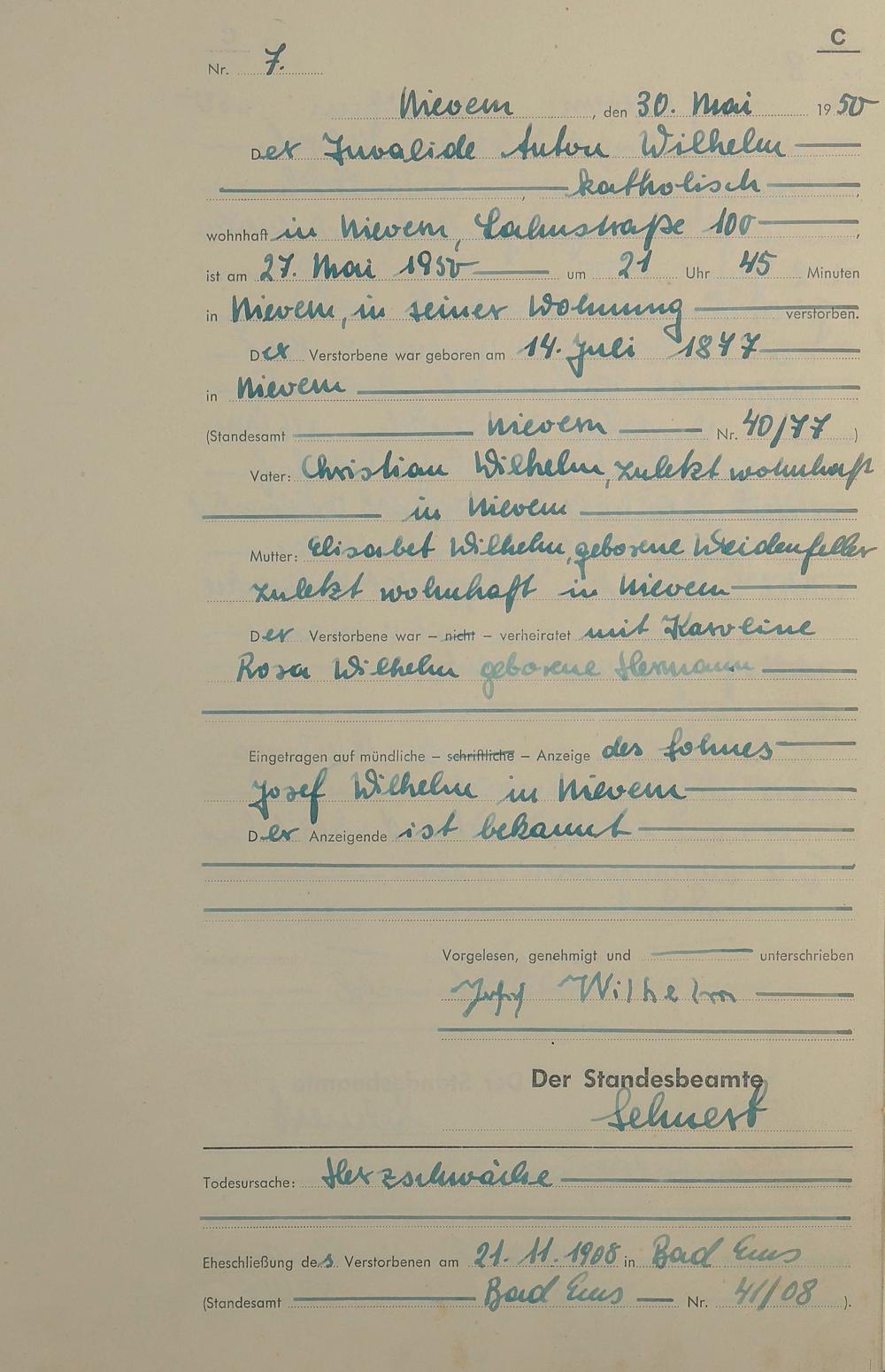 Sterberegister 1950