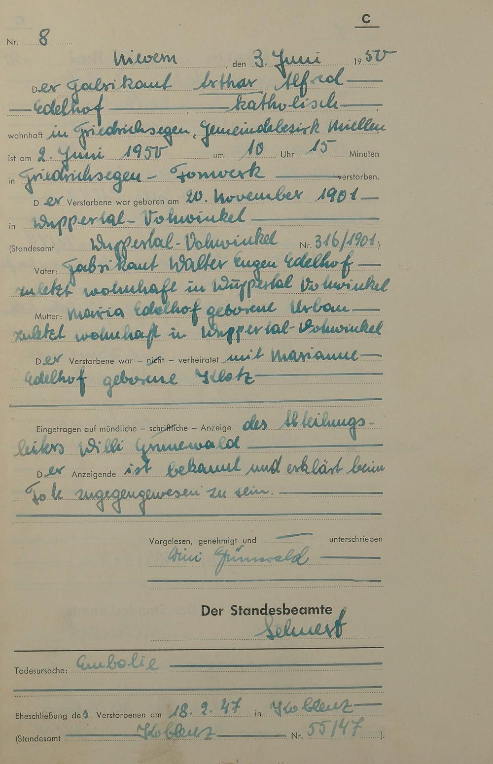 Sterberegister 1950