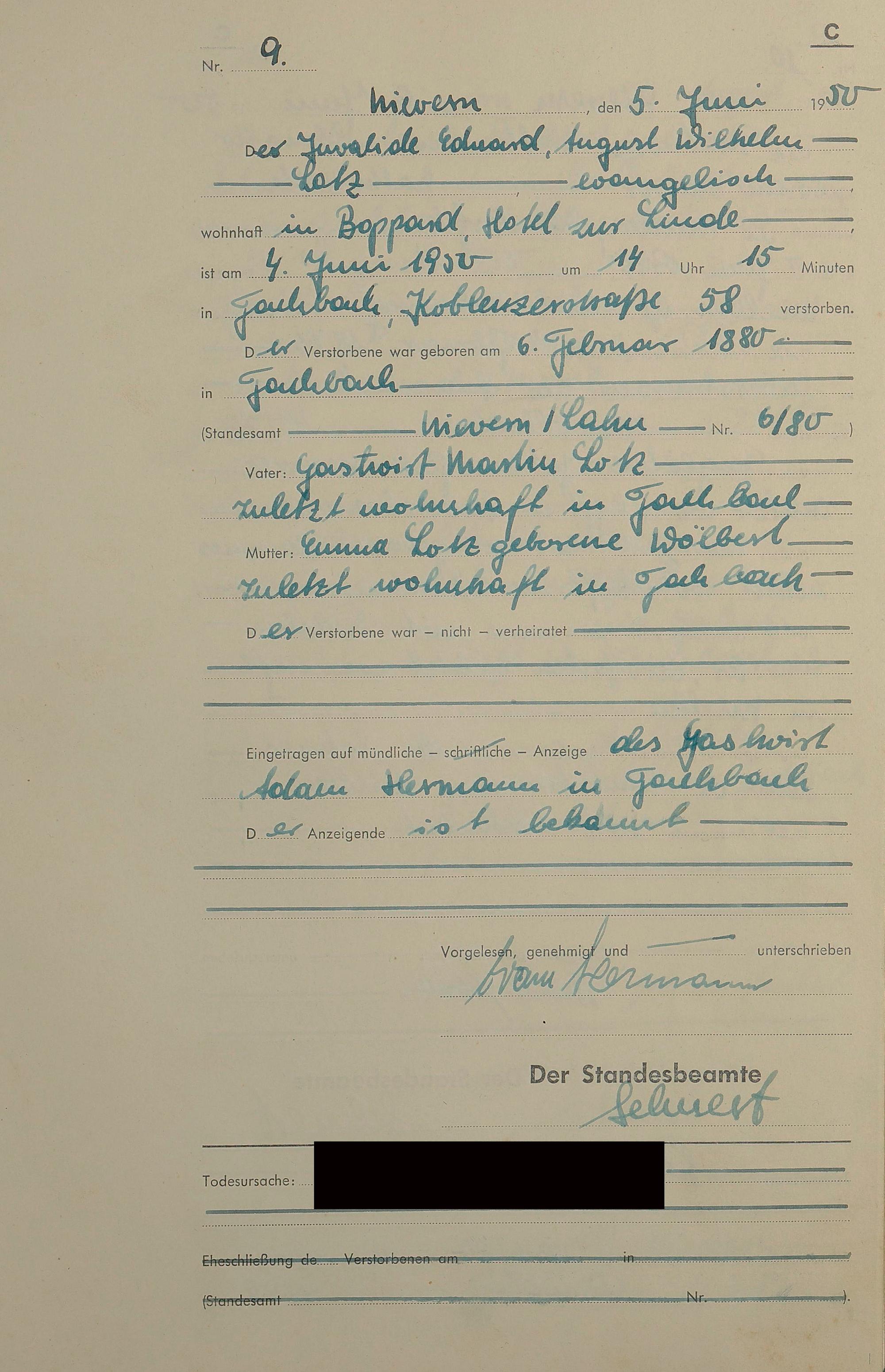 Sterberegister 1950