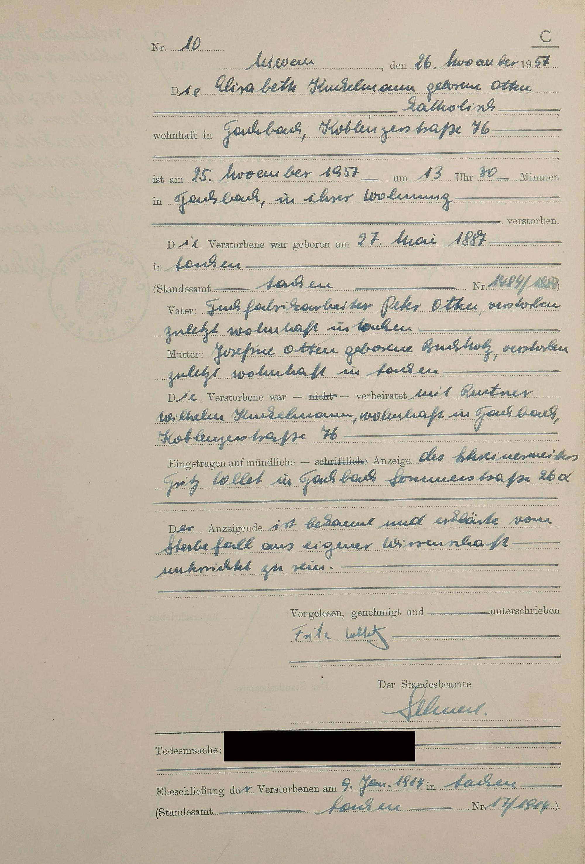 292/09: Sterberegister 1957