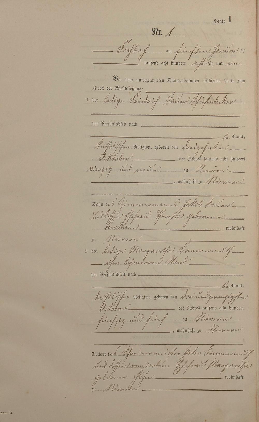 Heiratsregister 1881