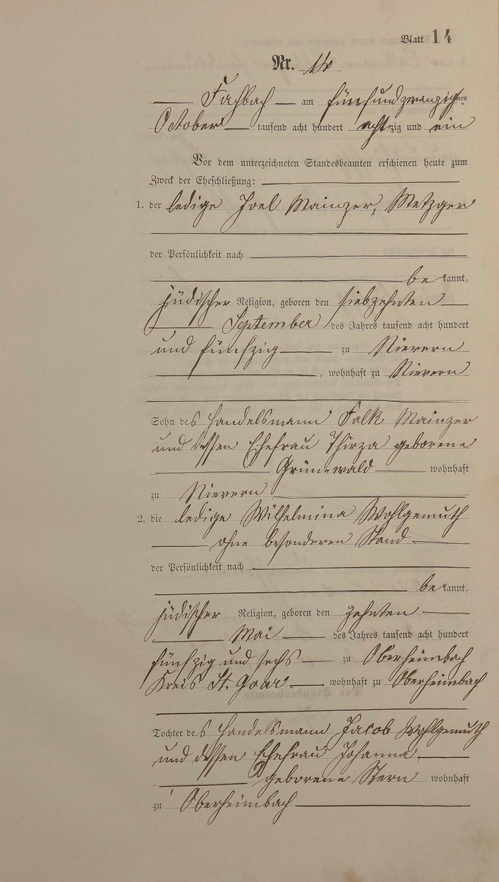 270/08: Heiratsregister 1881