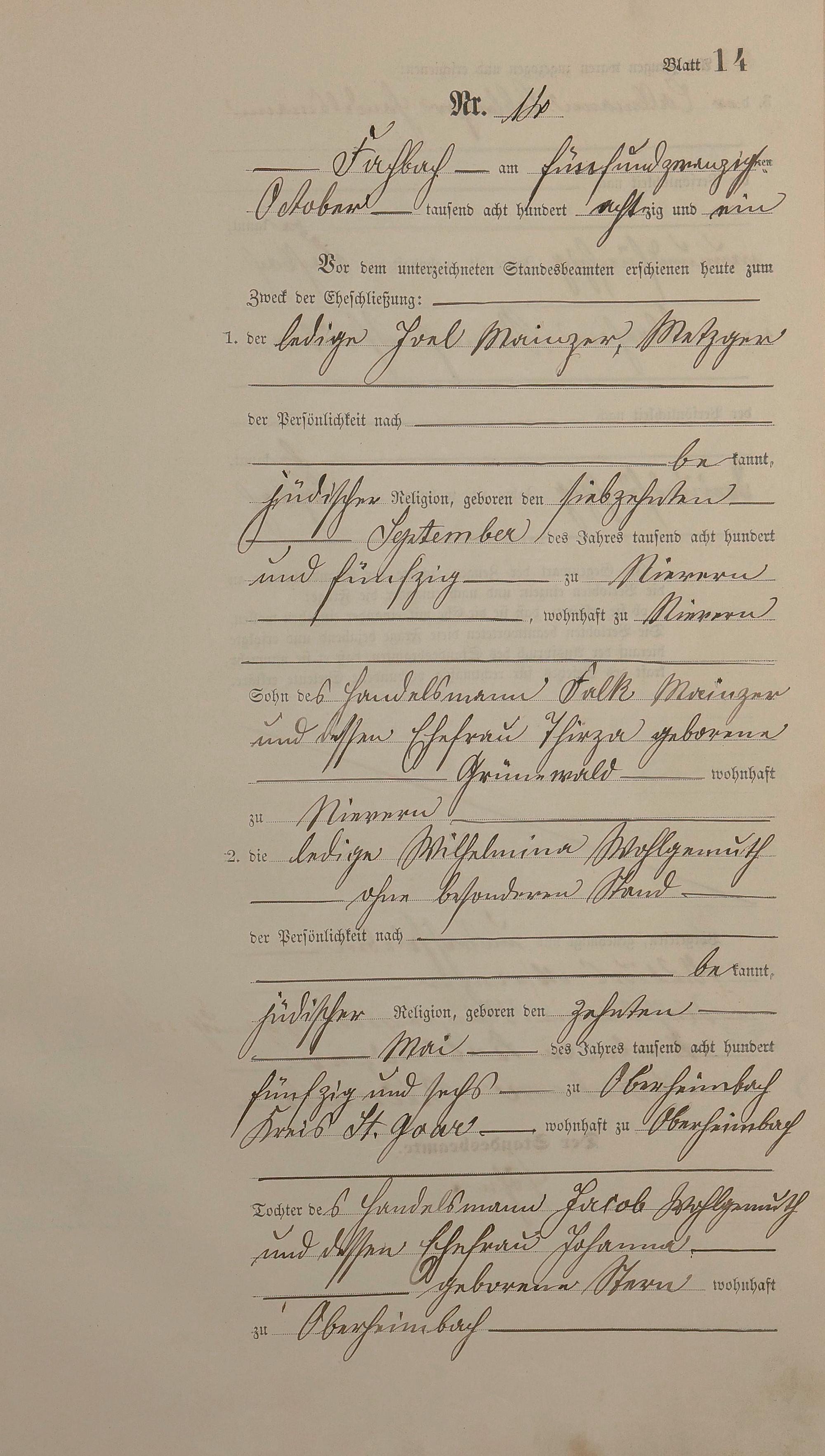 Heiratsregister 1881
