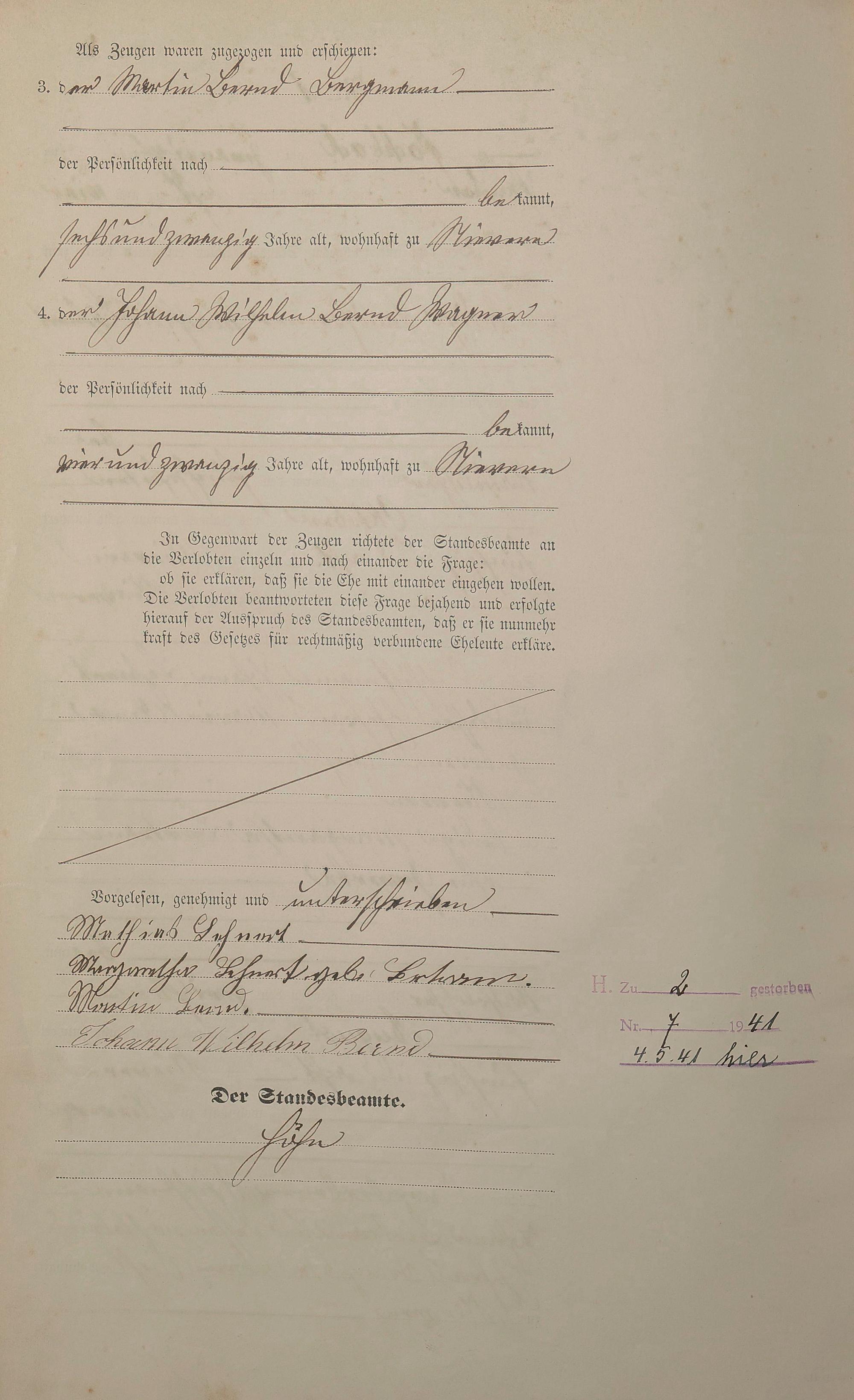 Heiratsregister 1884
