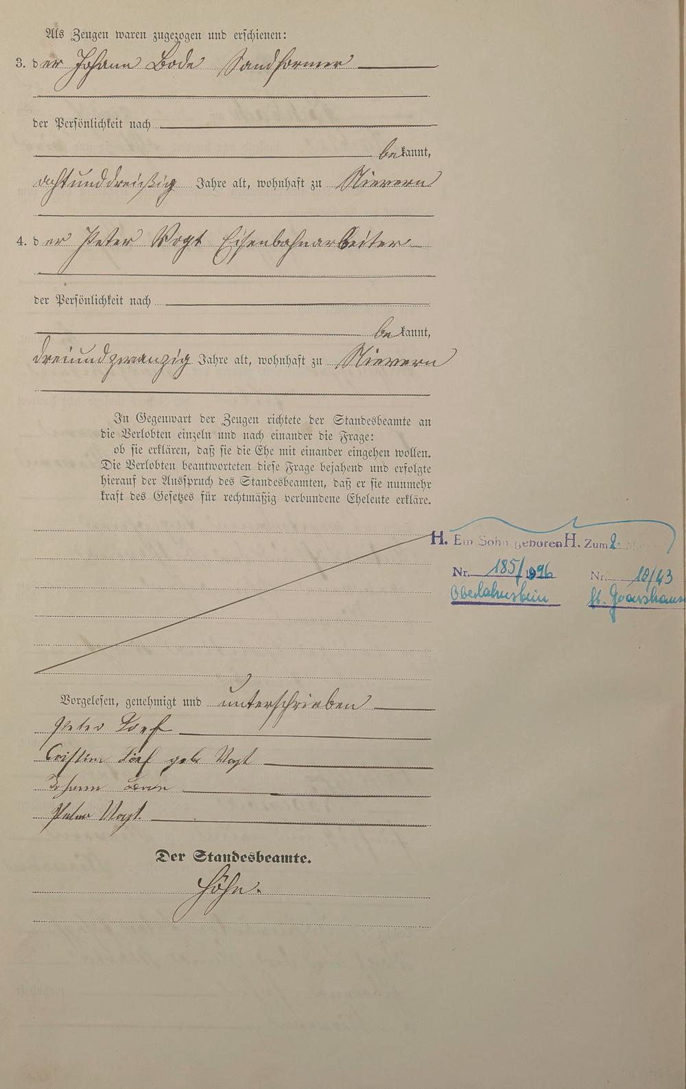 Heiratsregister 1884