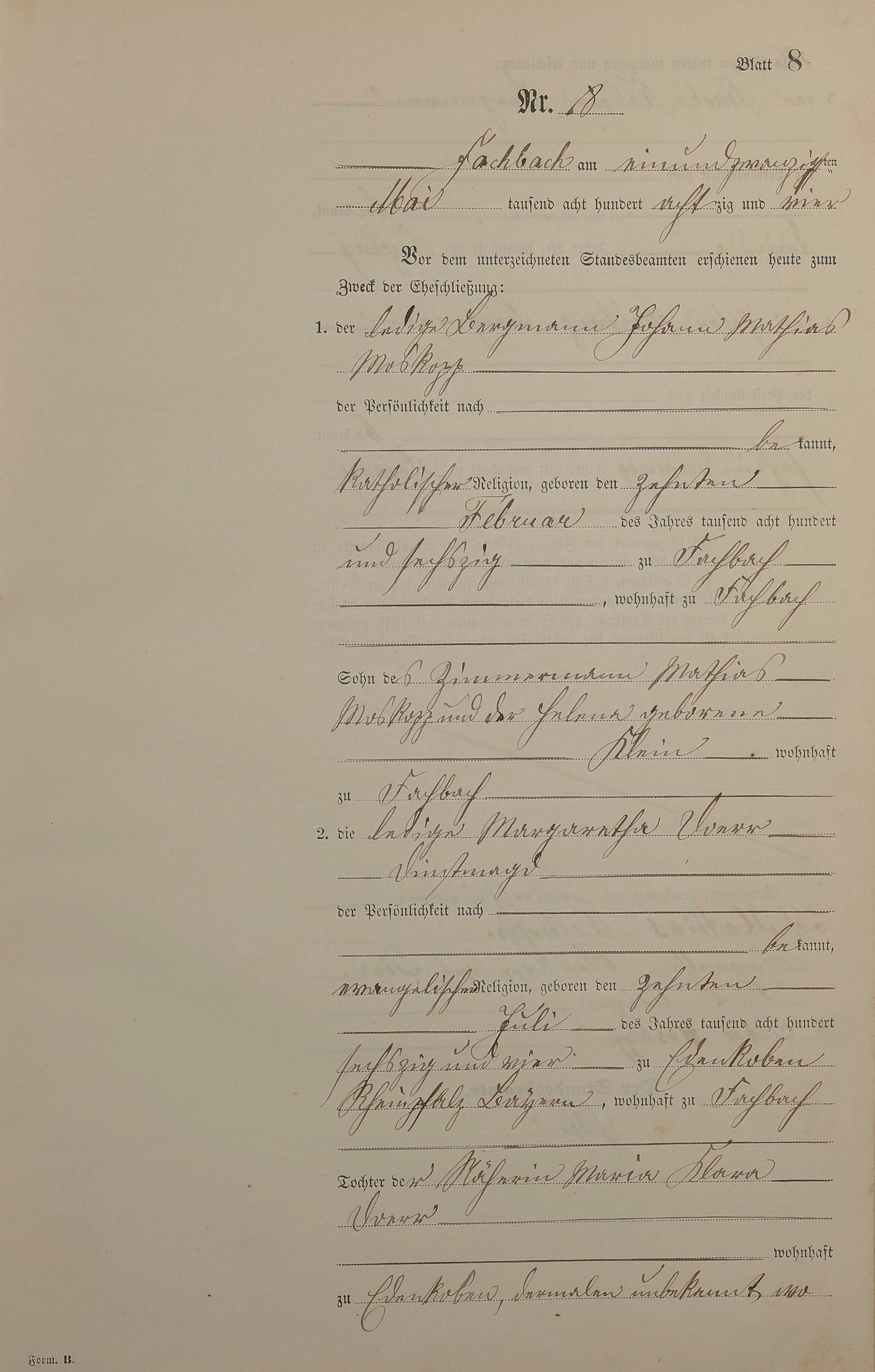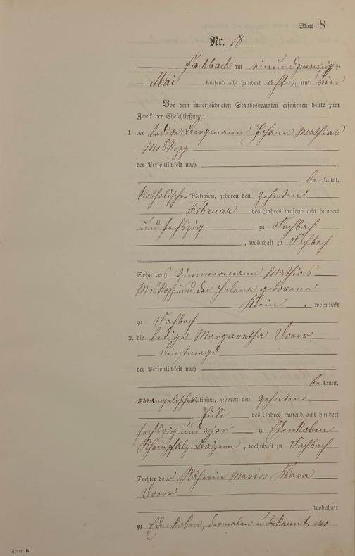 Heiratsregister 1884