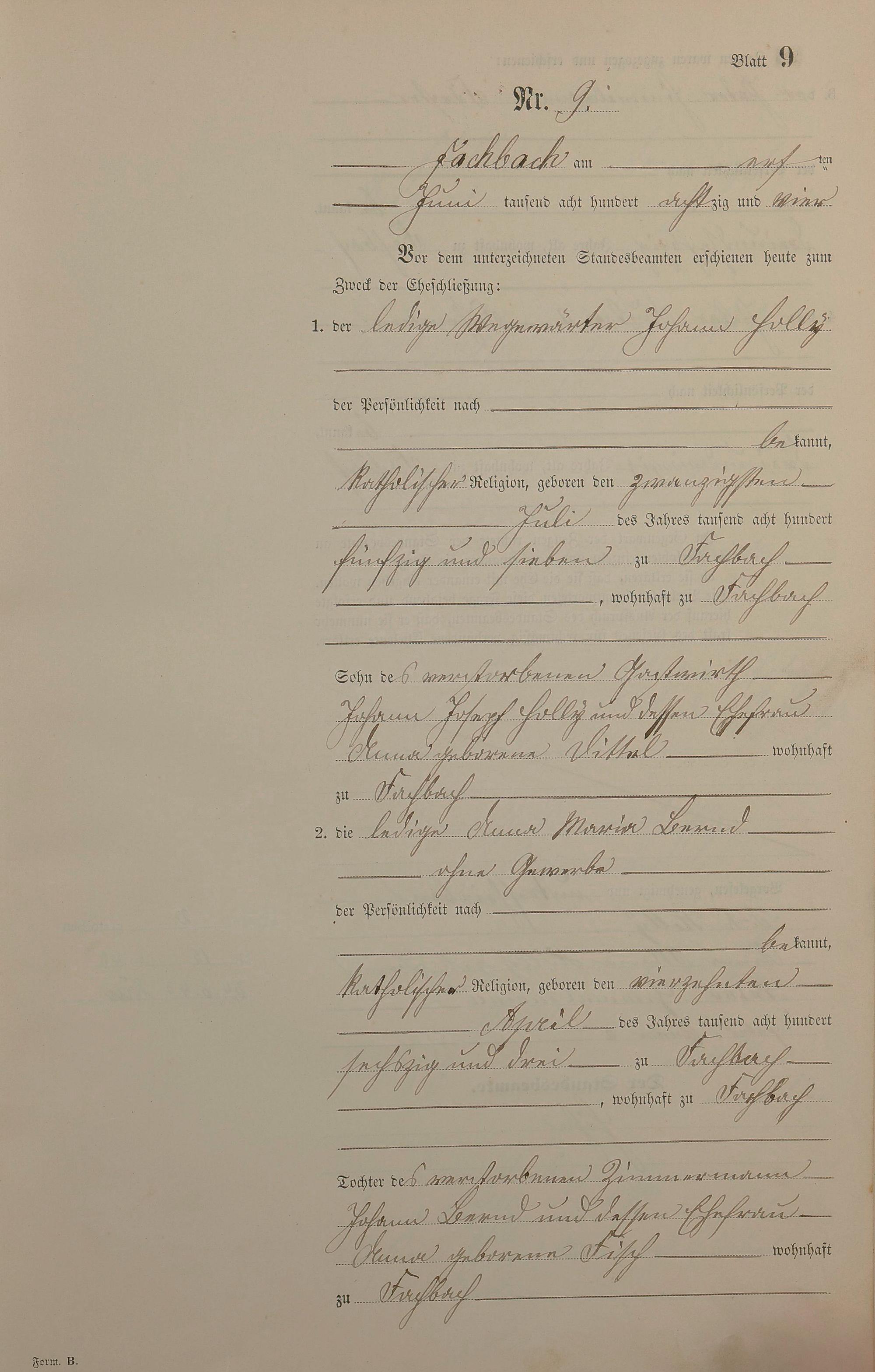 Heiratsregister 1884