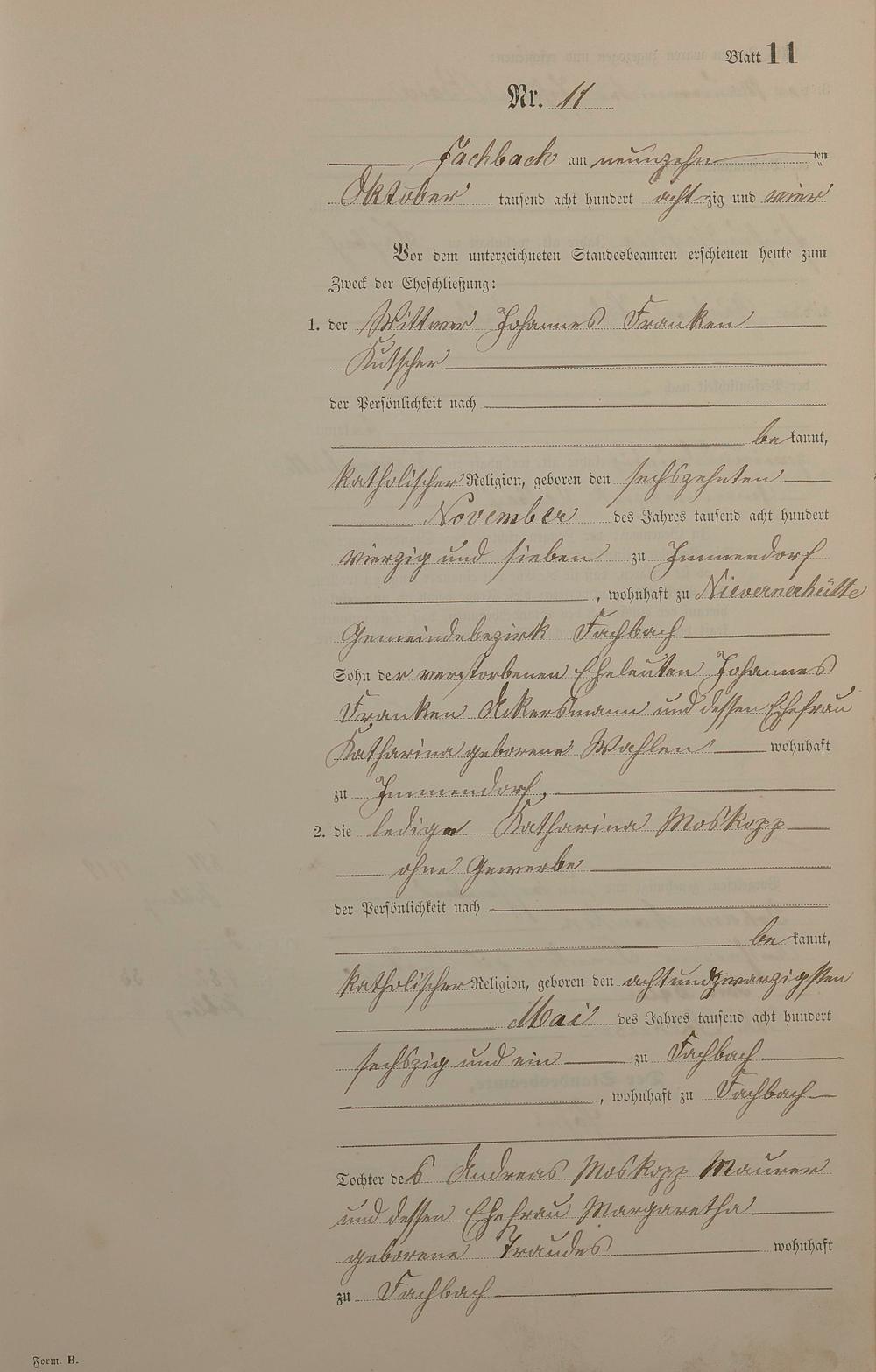270/11: Heiratsregister 1884