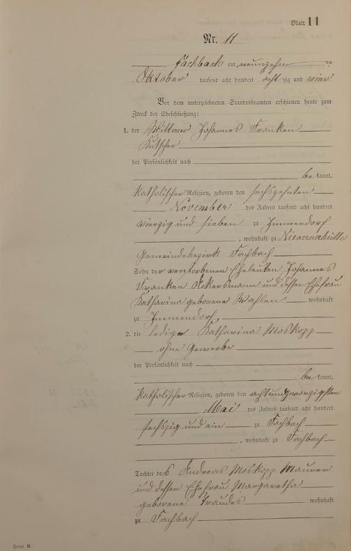 Heiratsregister 1884