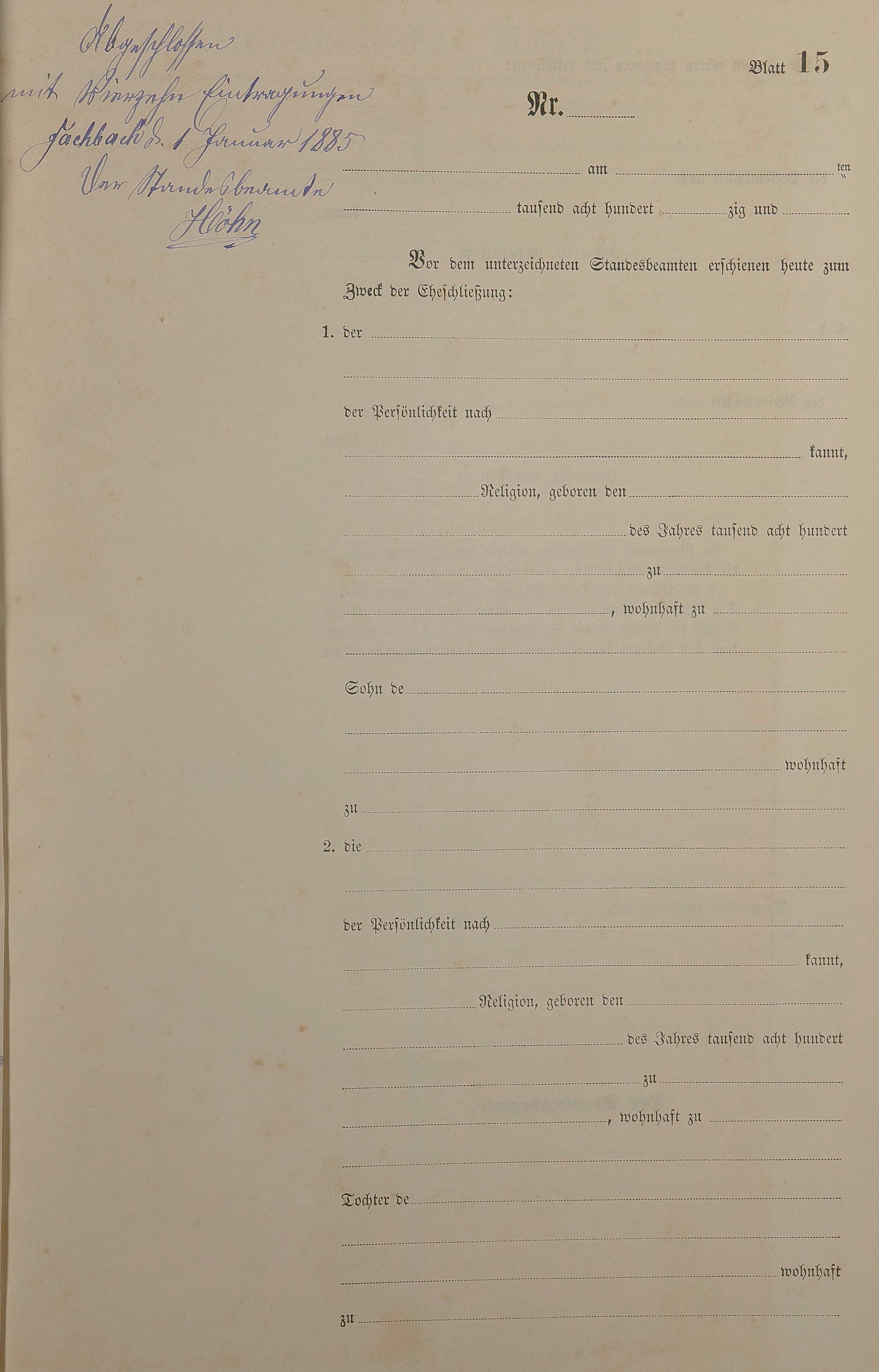 Heiratsregister 1884
