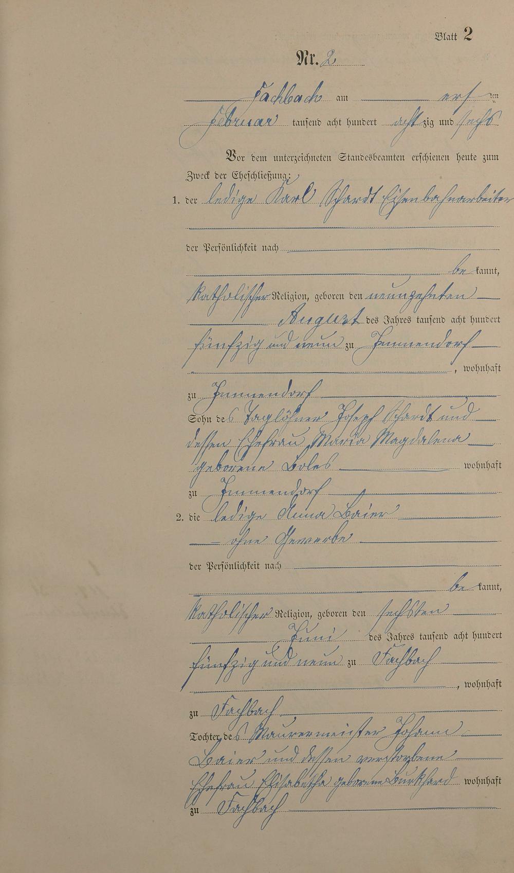 271/02: Heiratsregister 1886