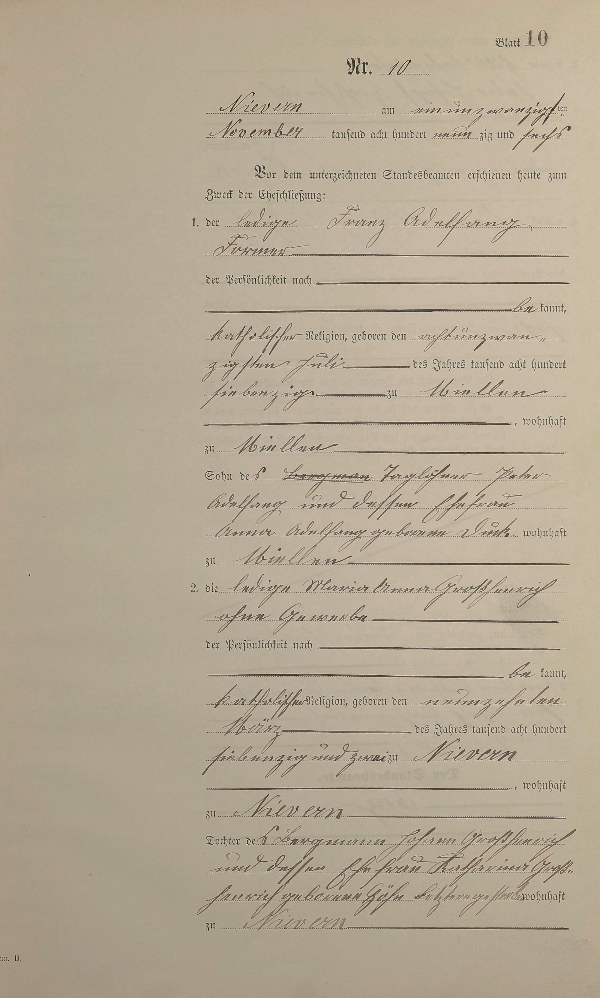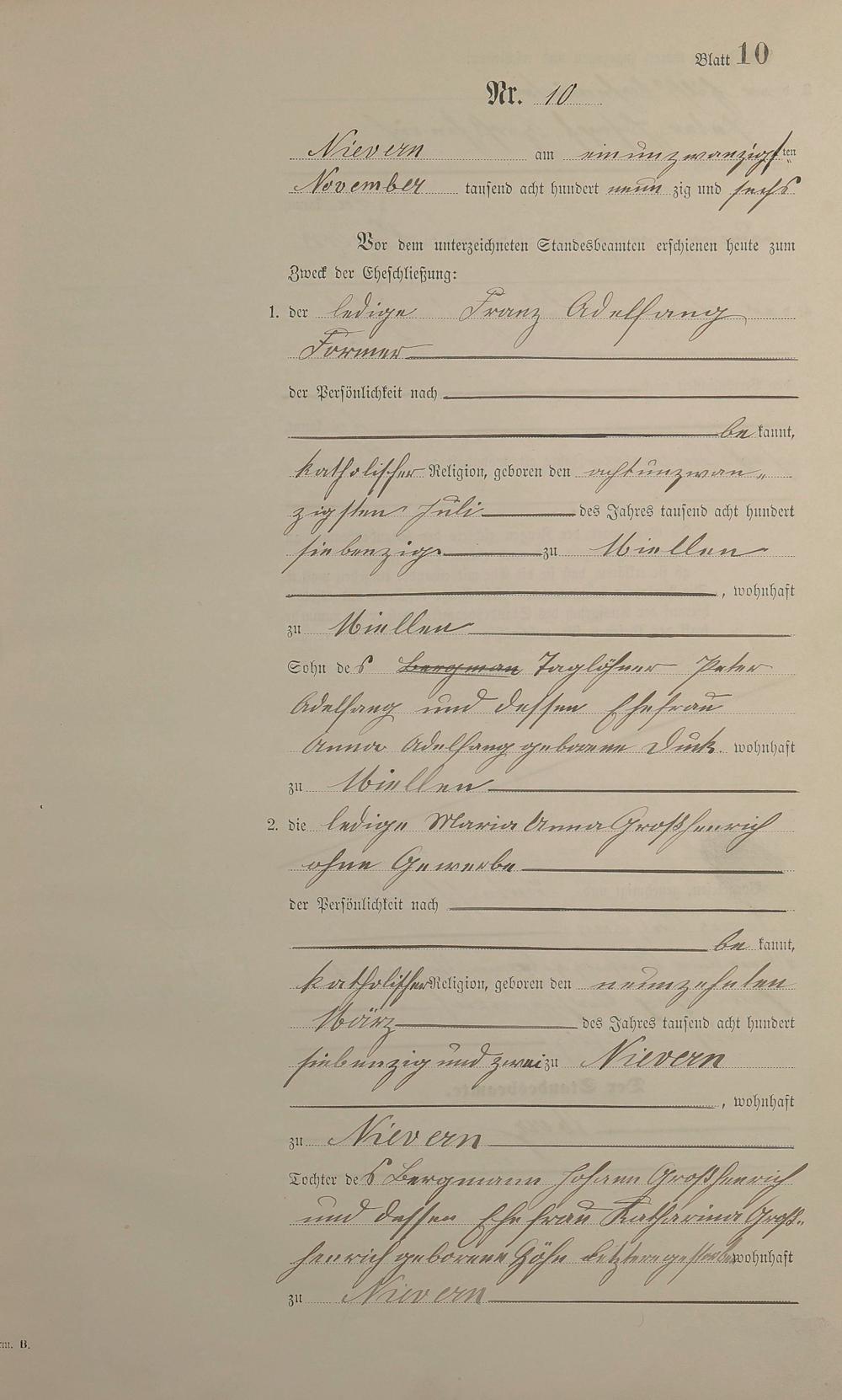 Heiratsregister 1896
