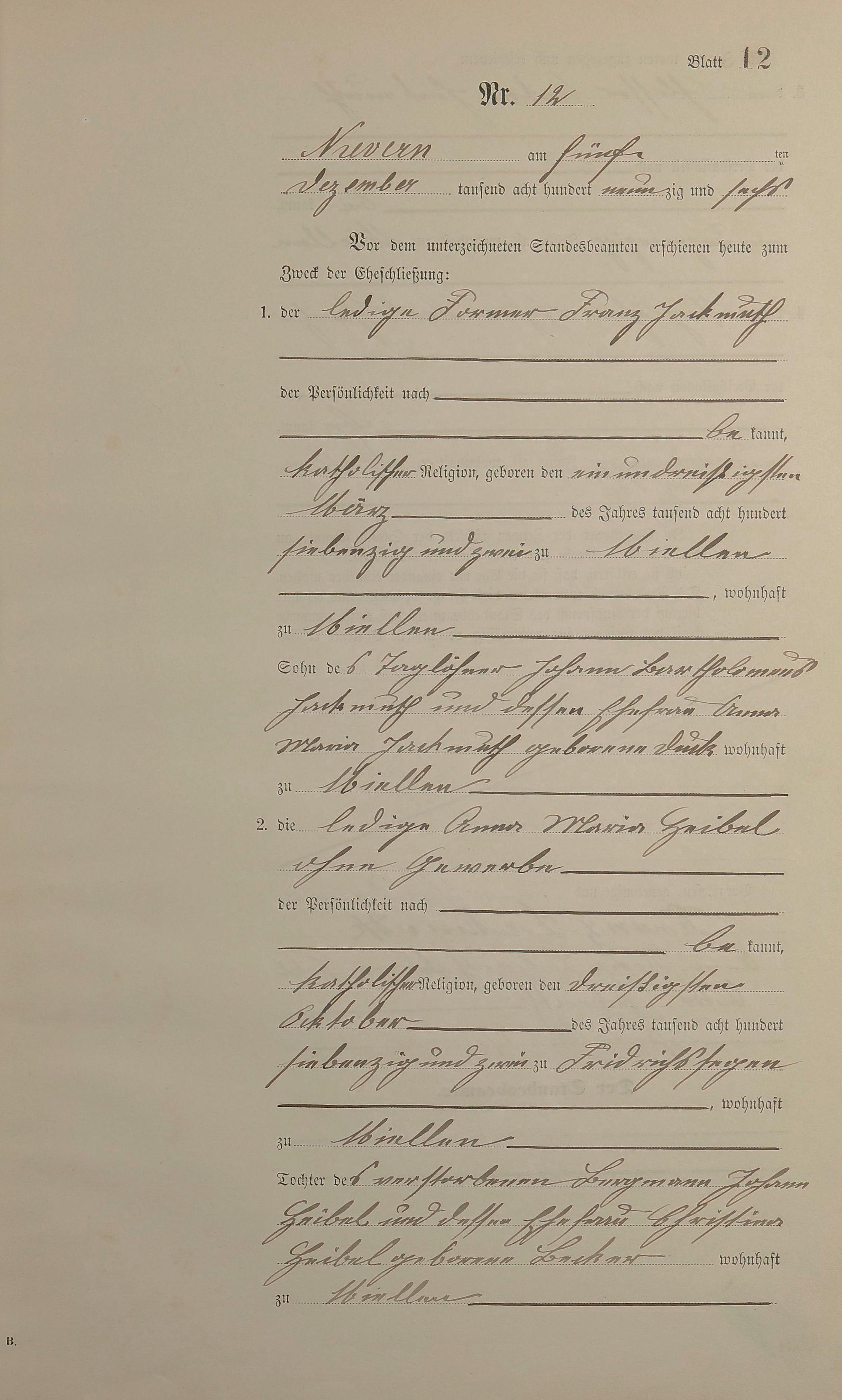 Heiratsregister 1896