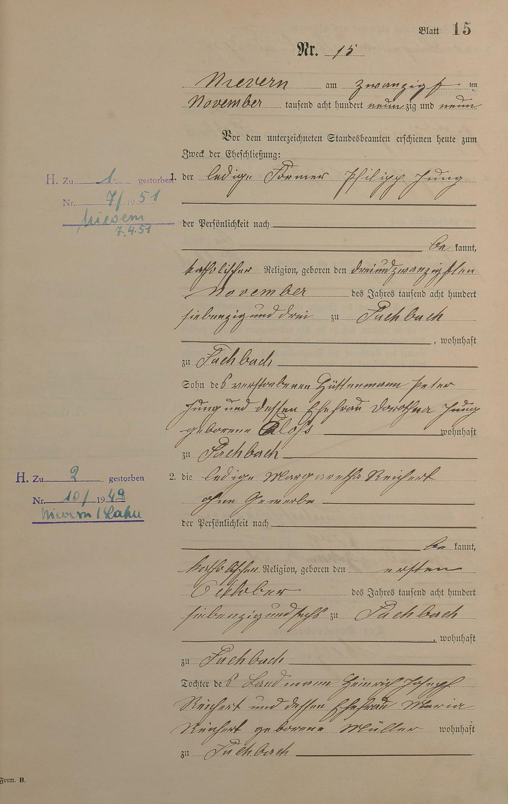 Heiratsregister 1899