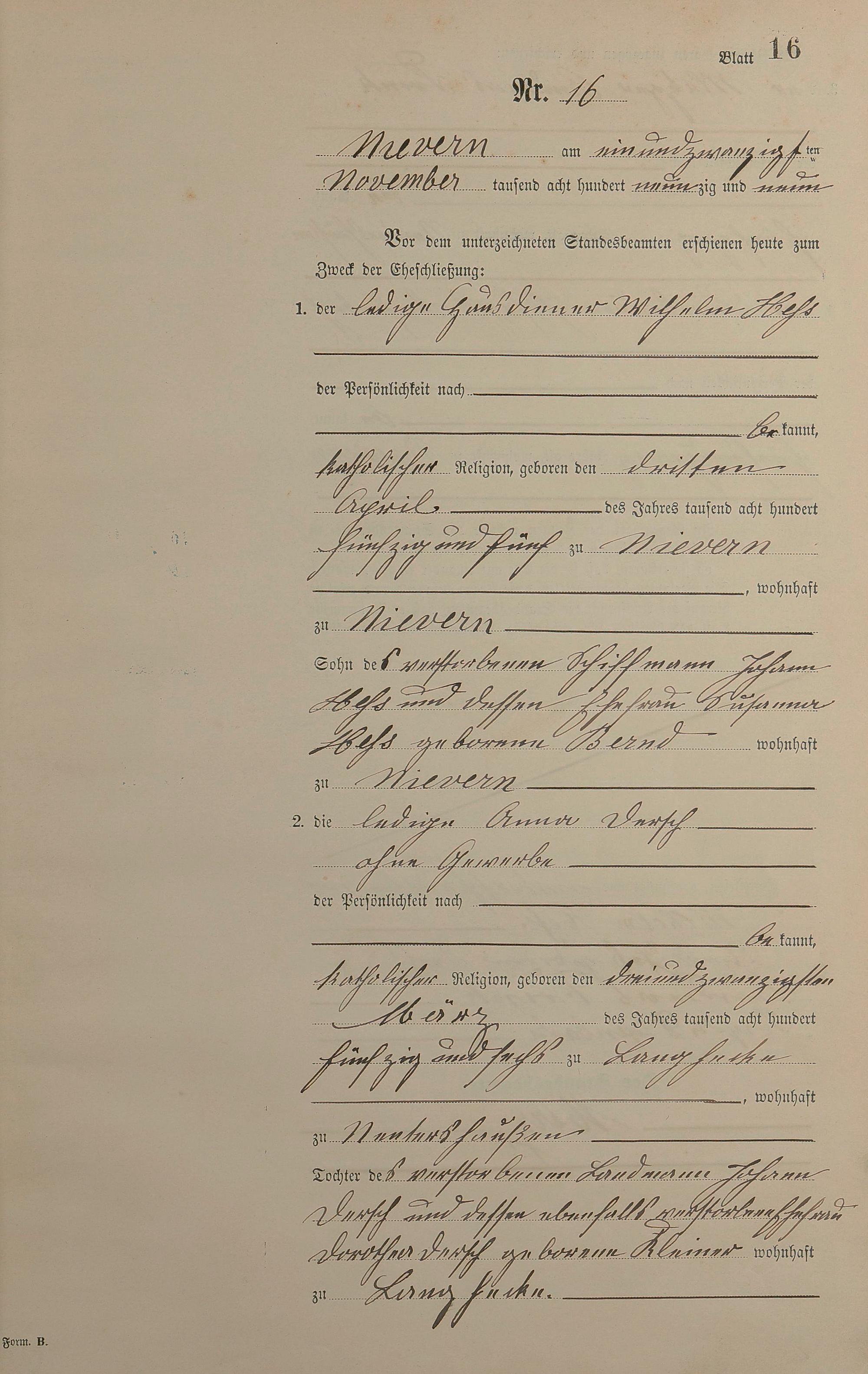 Heiratsregister 1899