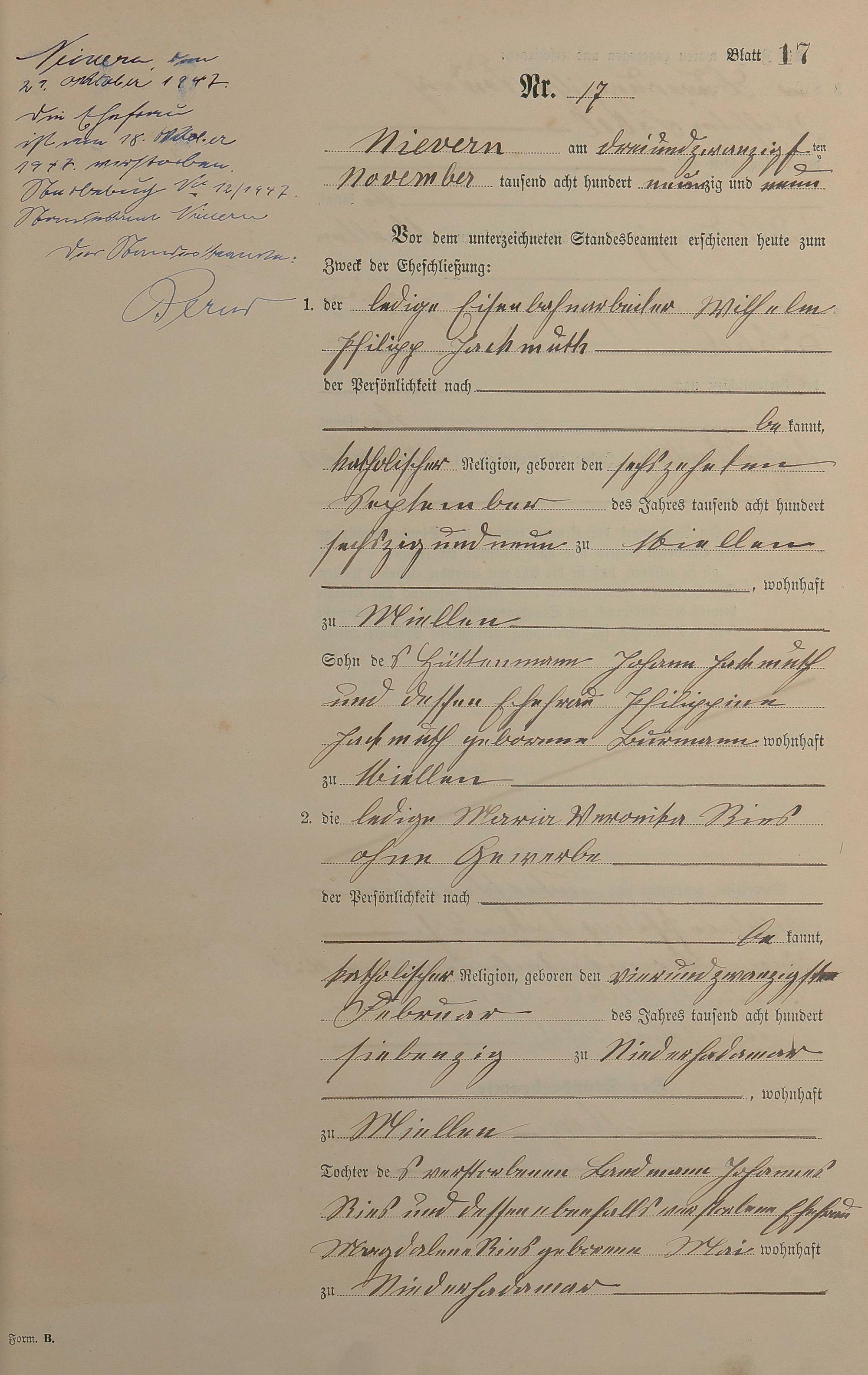 Heiratsregister 1899