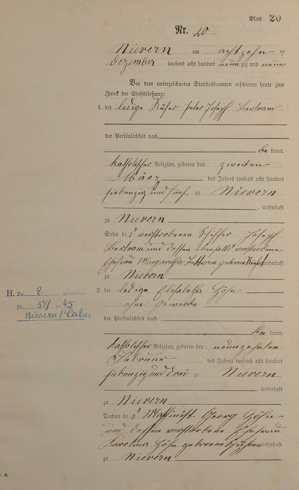 Heiratsregister 1899