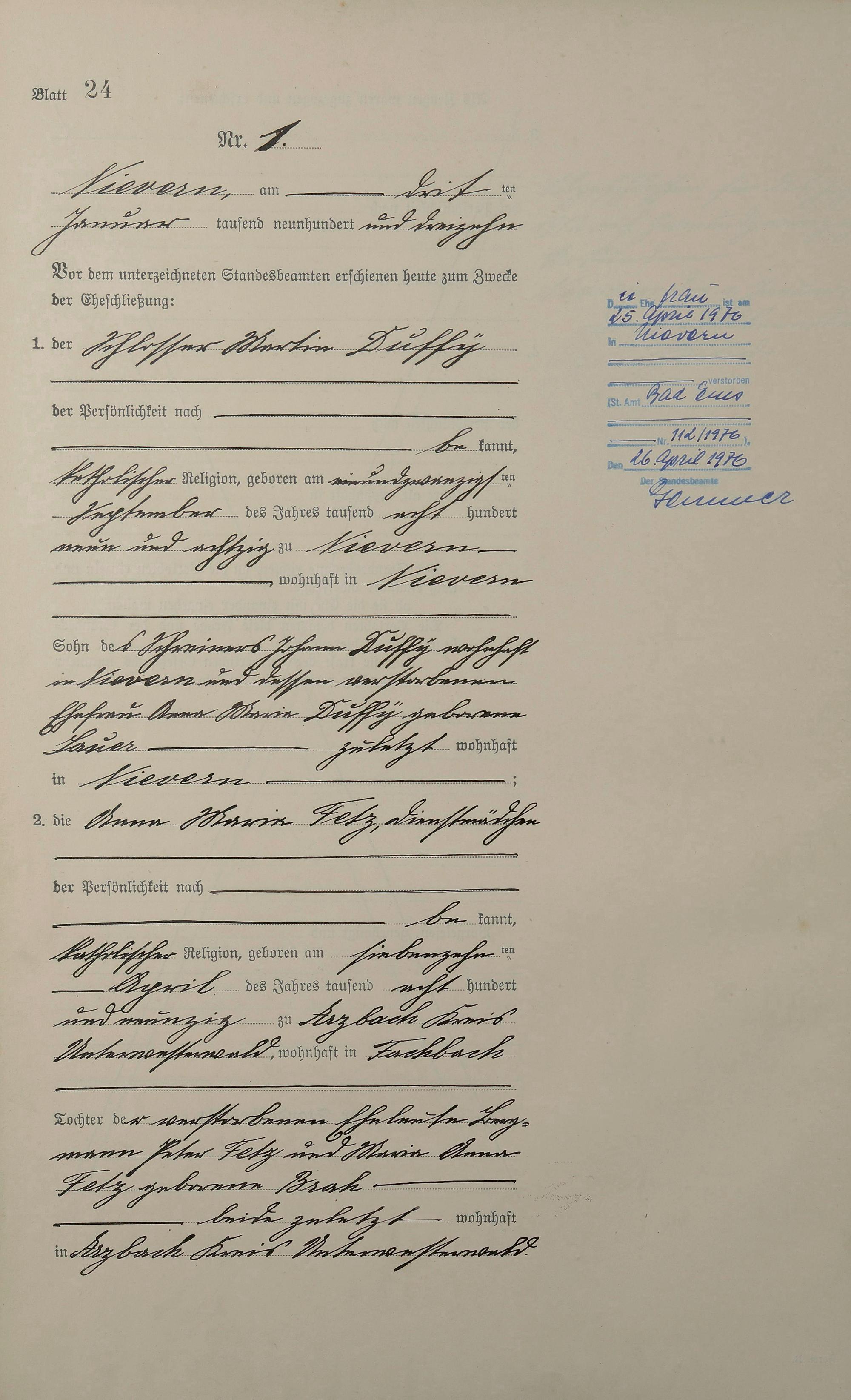 Heiratsregister 1913