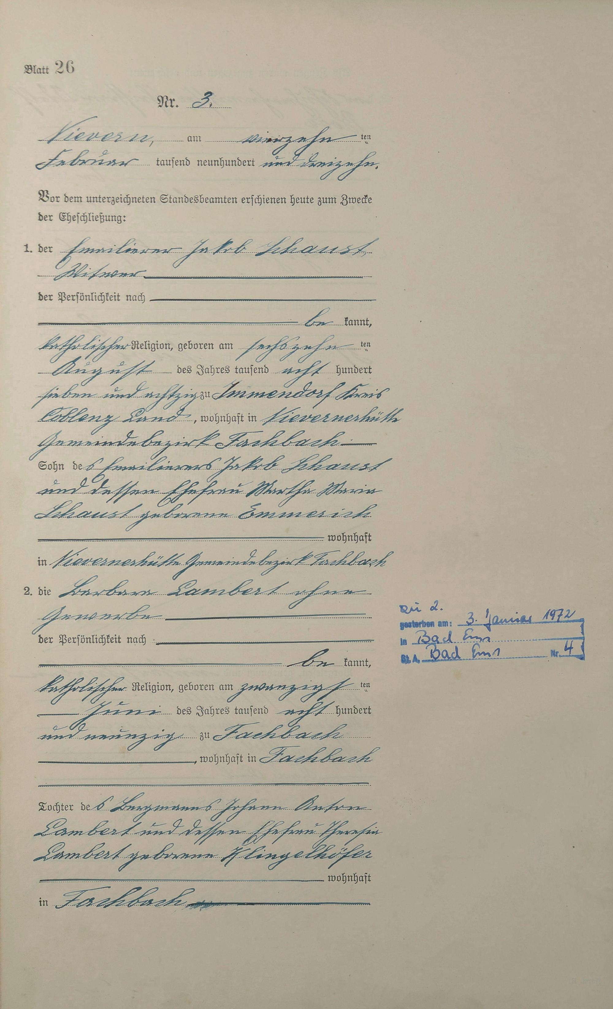 Heiratsregister 1913
