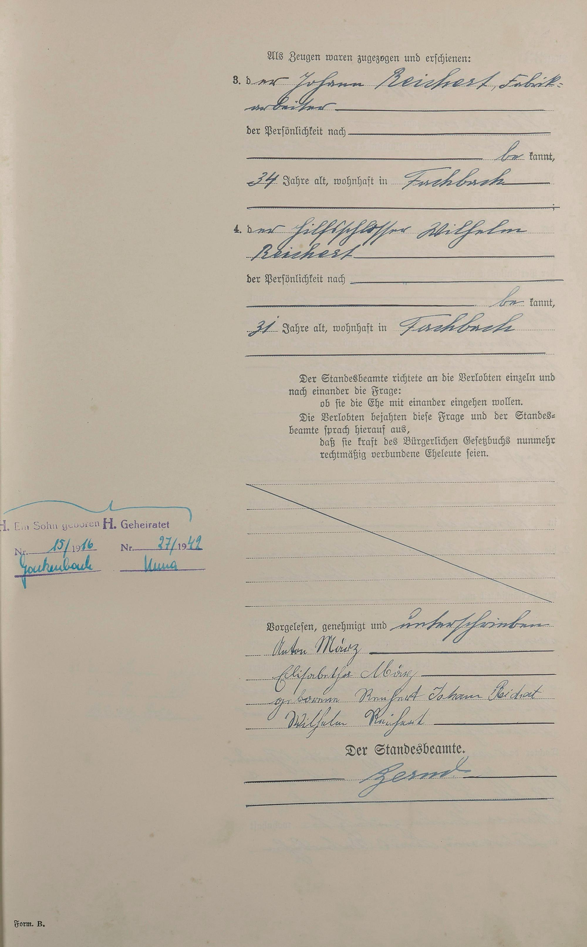 Heiratsregister 1913