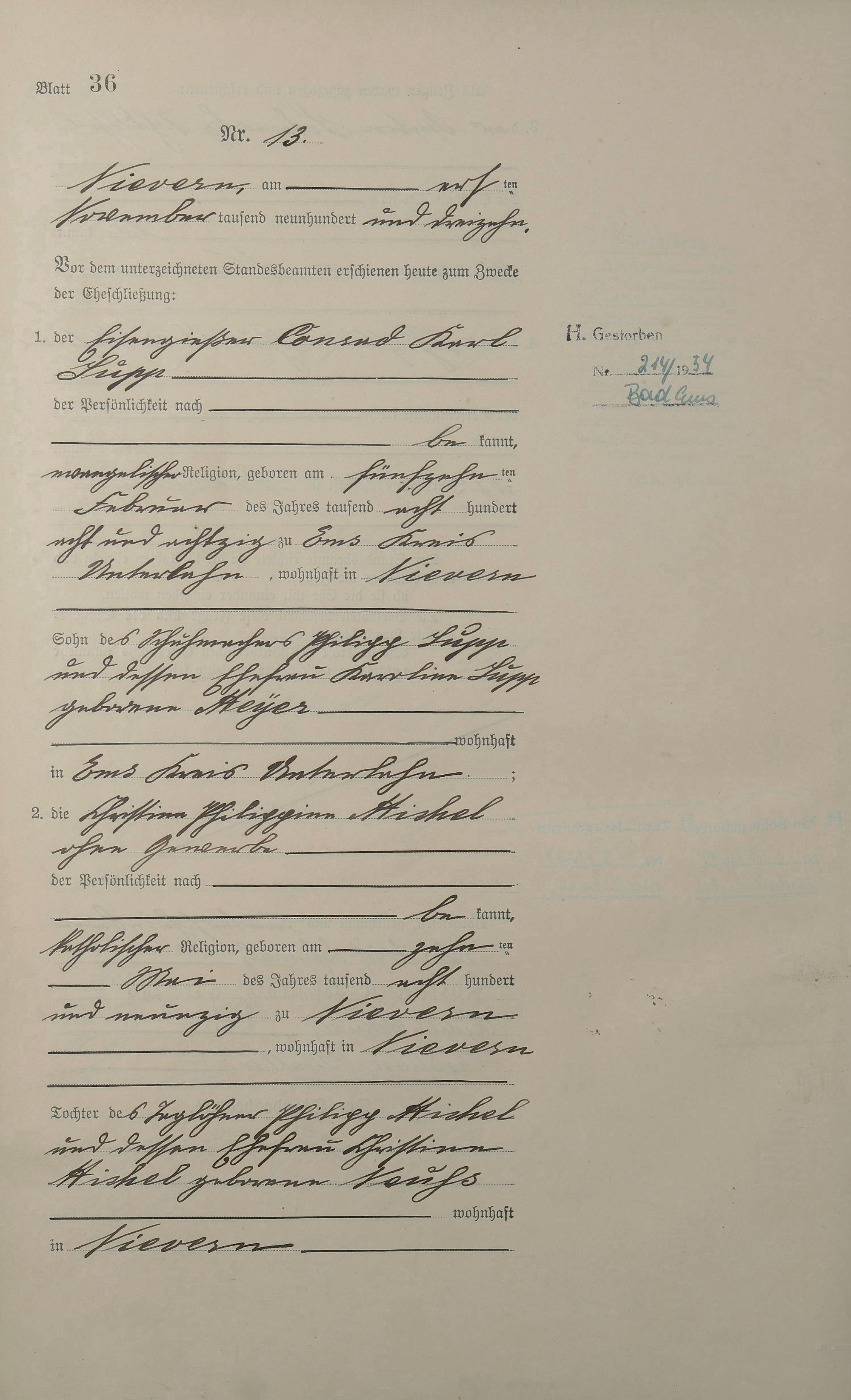Heiratsregister 1913