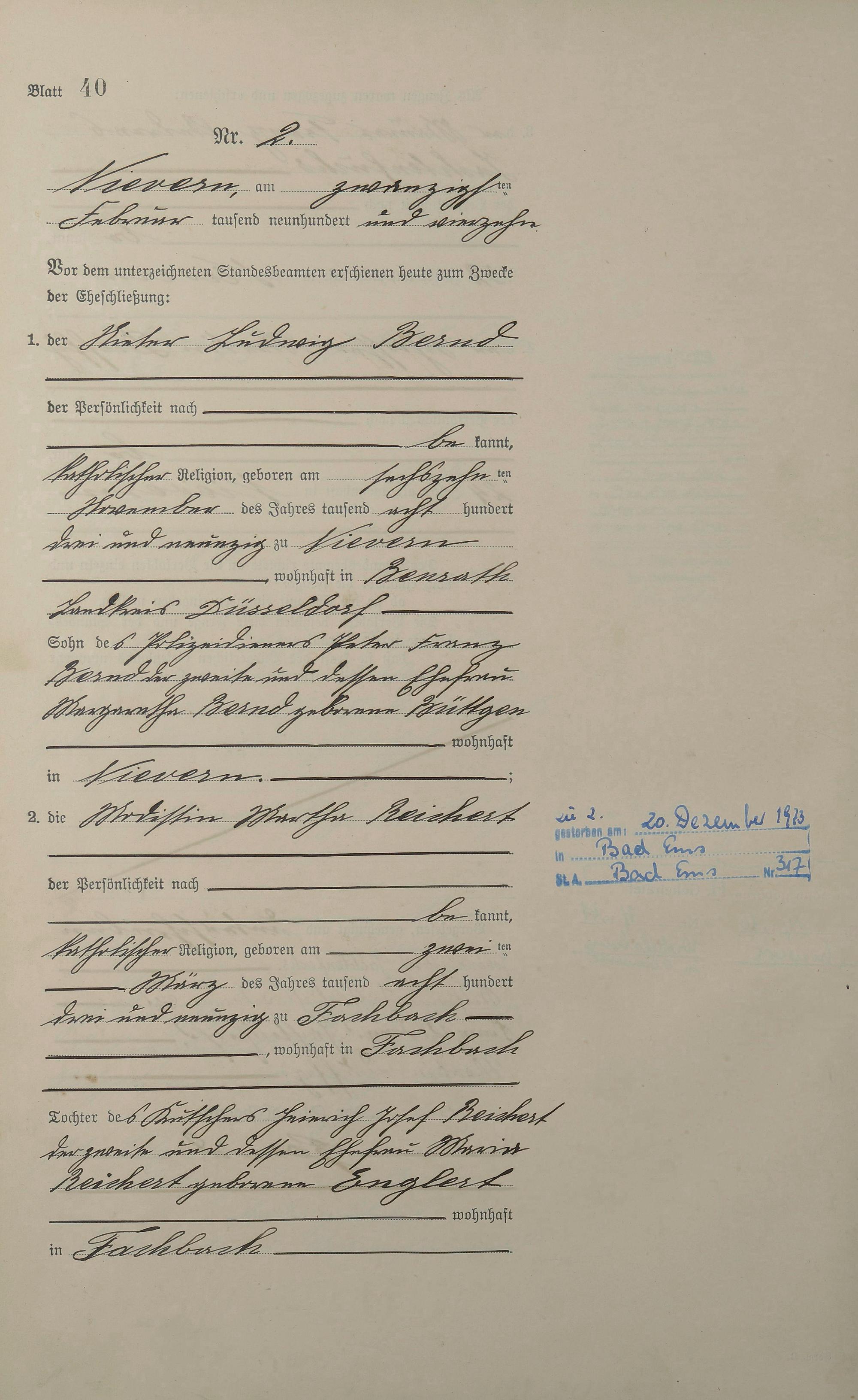 Heiratsregister 1914