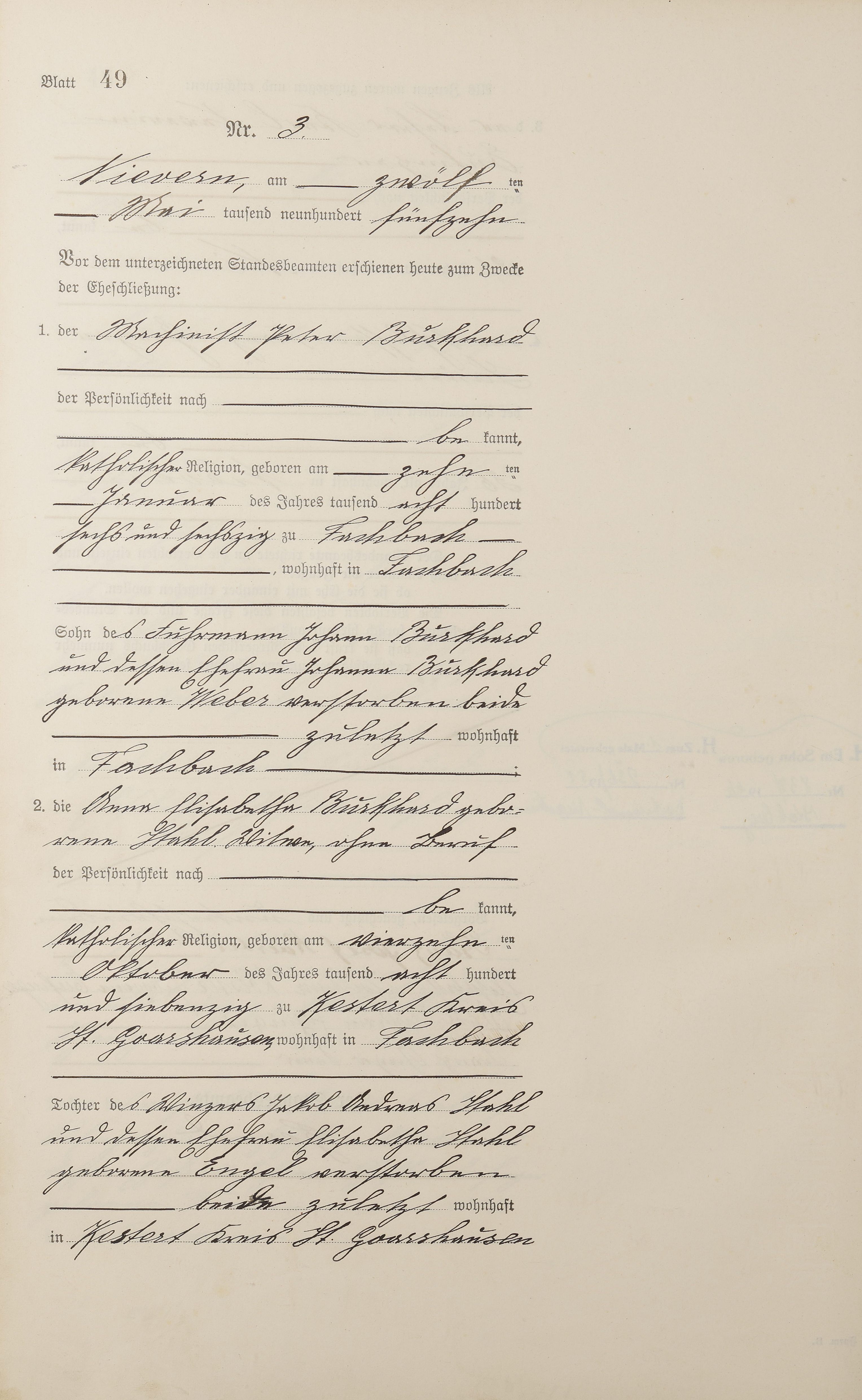 Heiratsregister 1915