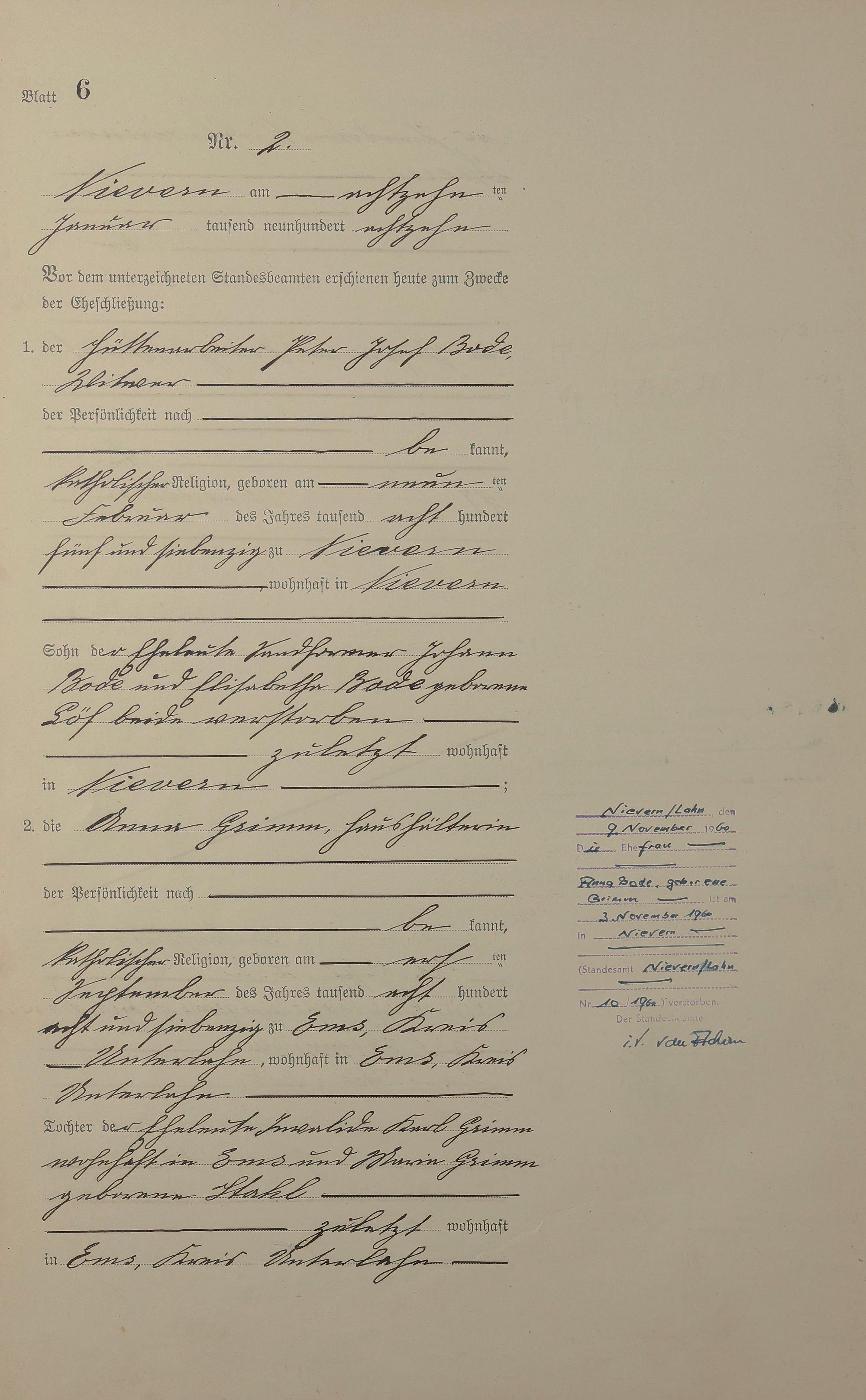Heiratsregister 1918