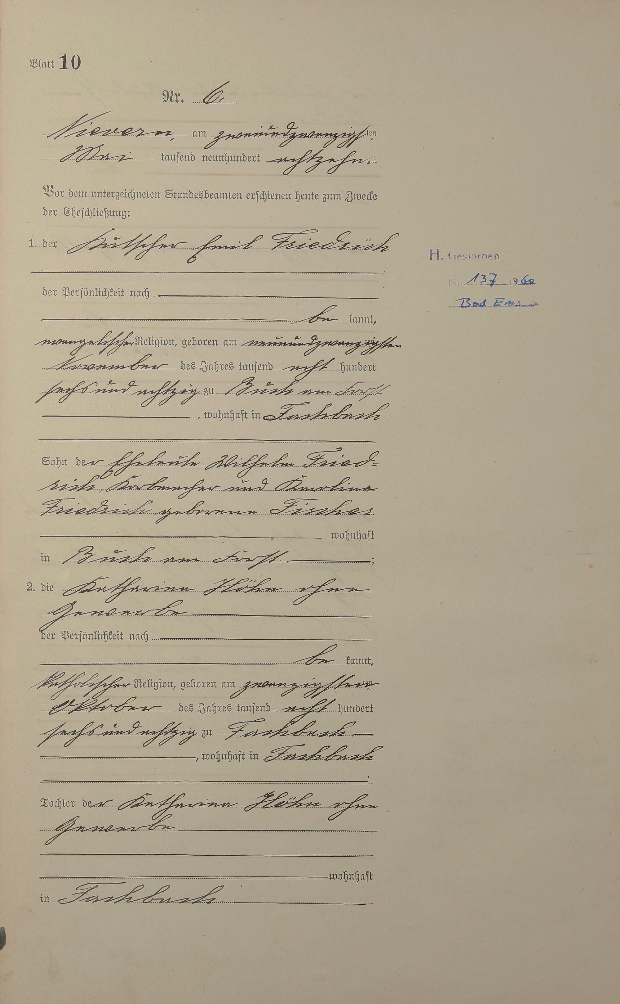 Heiratsregister 1918
